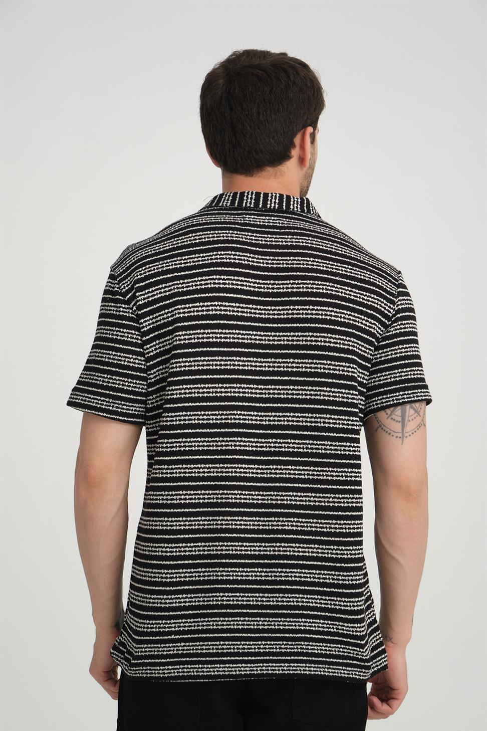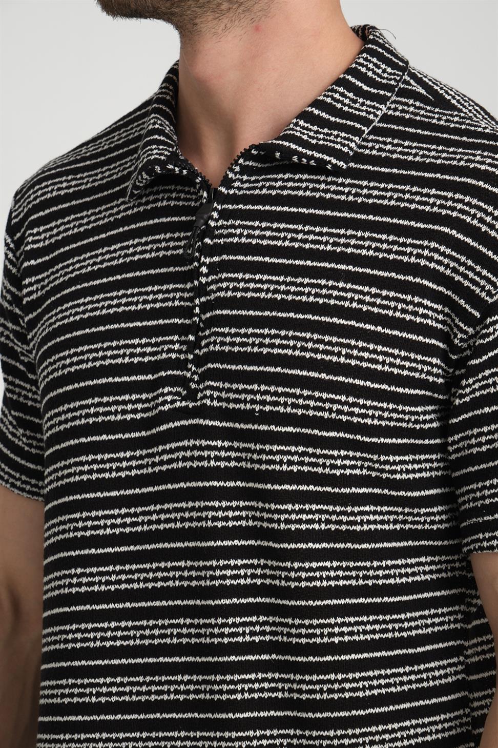 R-5834 Half-Zip Collar Striped Knit T-Shirt – Black
