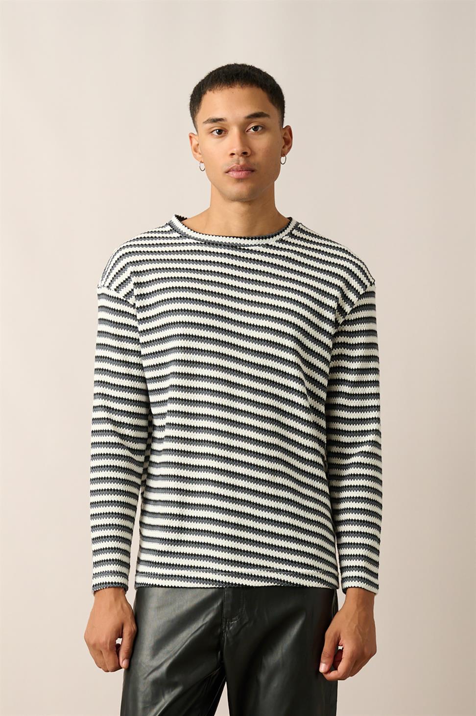 R-5838 Anthracite Crew Neck Long Sleeve Knit Sweatshirt