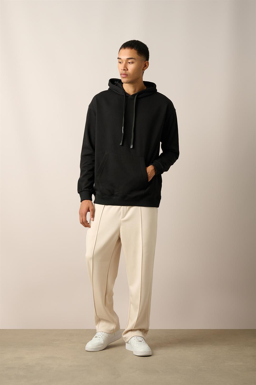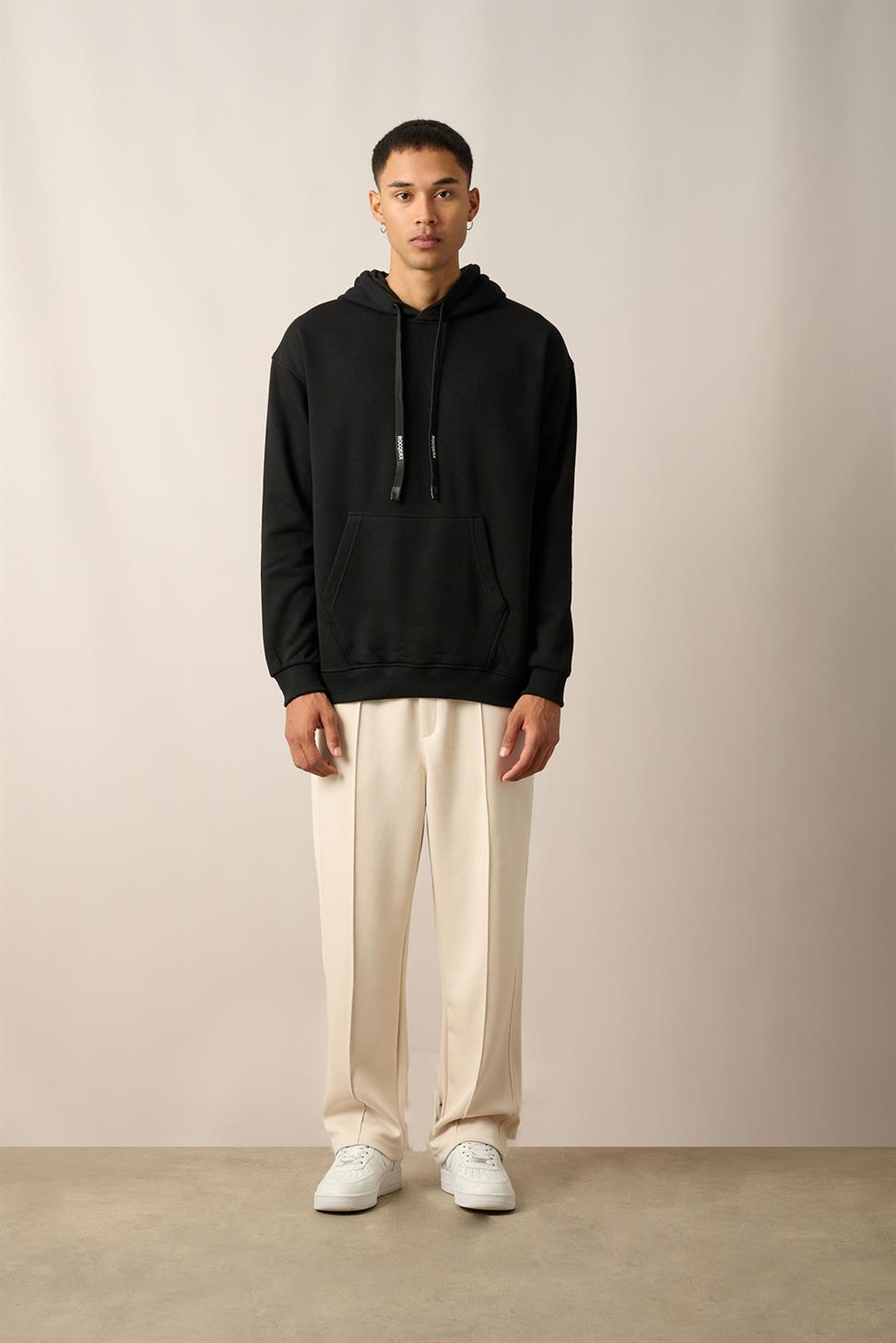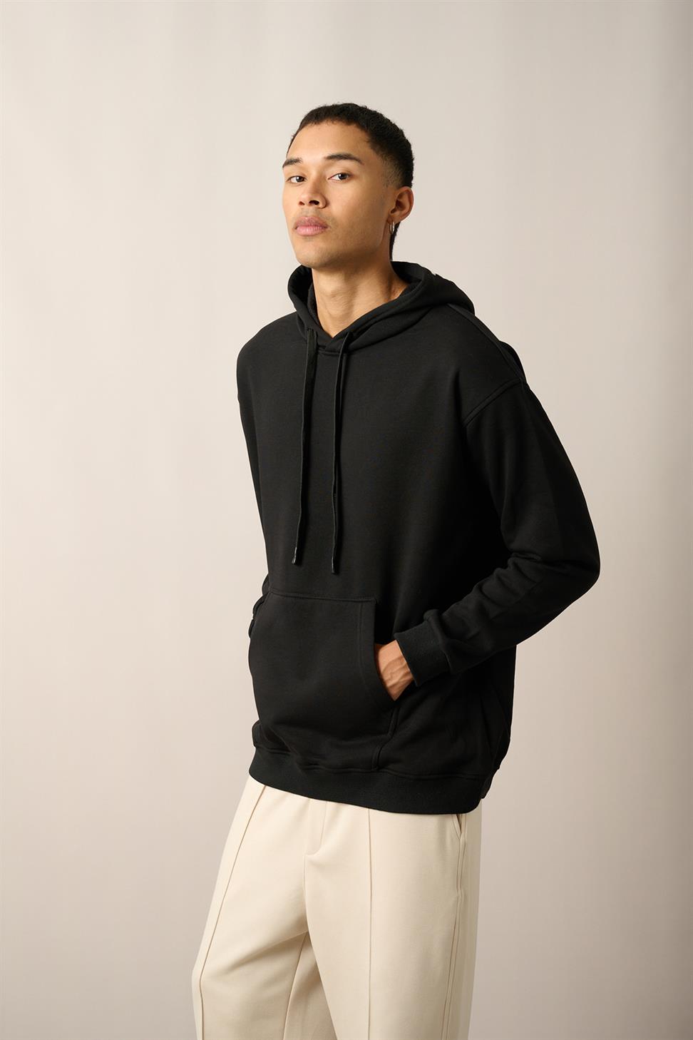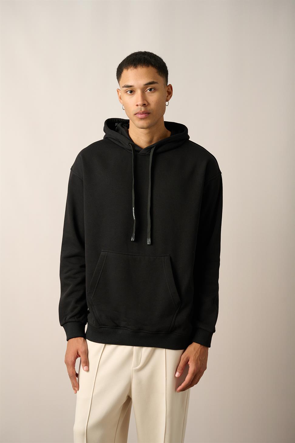 X-1005 Oversized Sweatshirt with Zipped Pocket – Black | 3-Thread Brushed Fleece