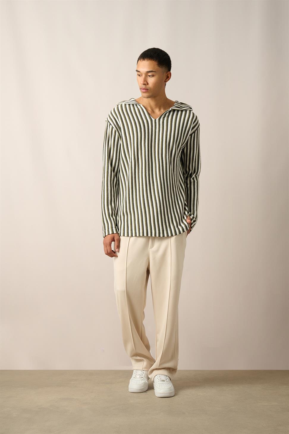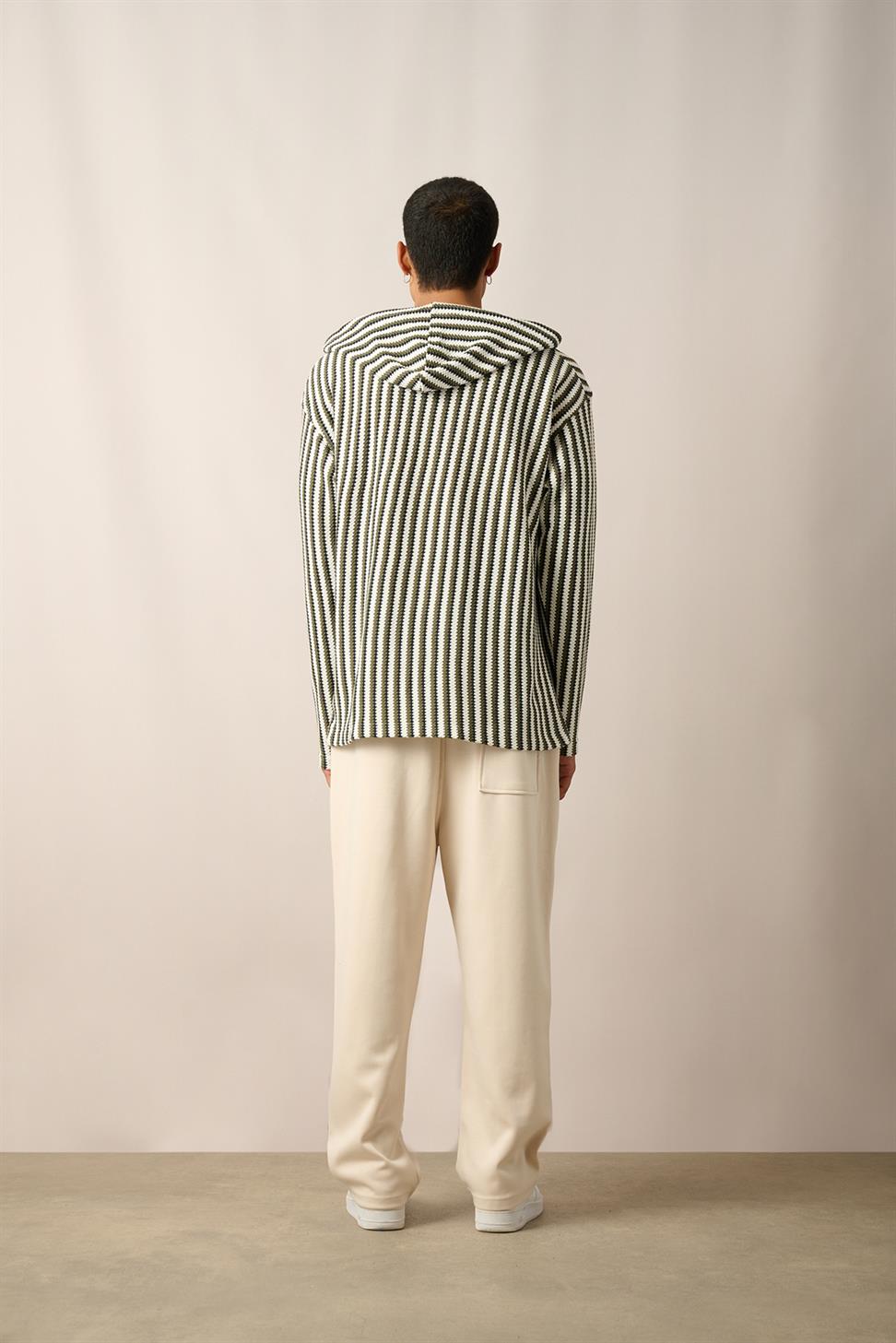 Stay stylish and comfortable with this hooded striped sweatshirt featuring a practical kangaroo pocket and a relaxed fit. Crafted from 63% polyester, 32% viscose, and 6% lycra knit fabric, it offers stretch, breathability, and durability — perfect for both casual wear and everyday comfort.