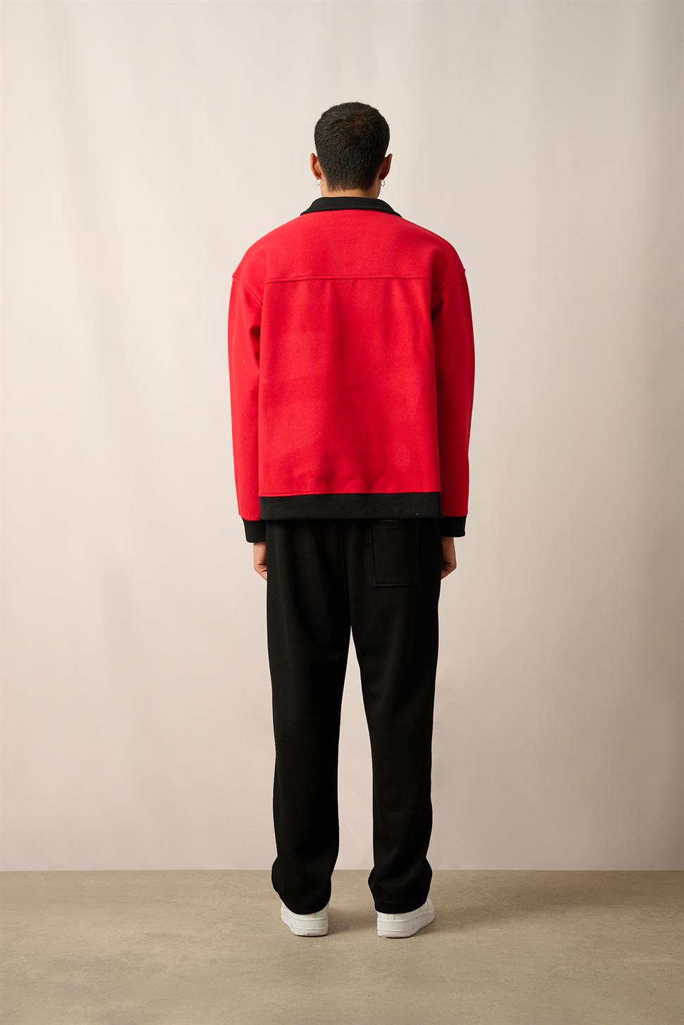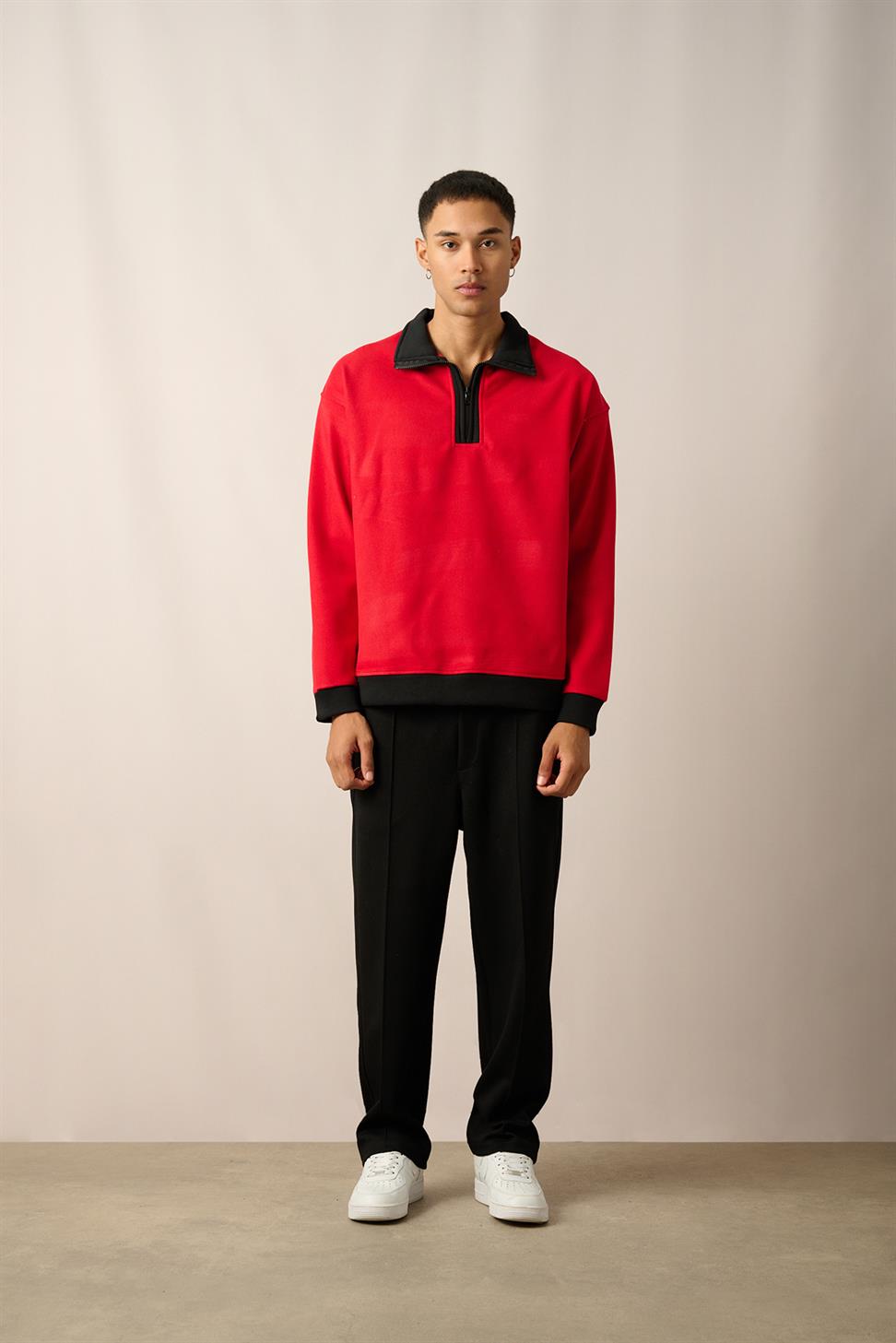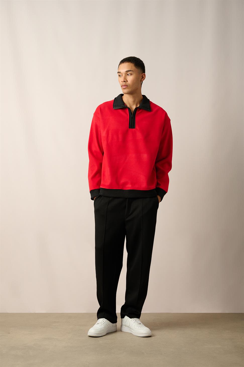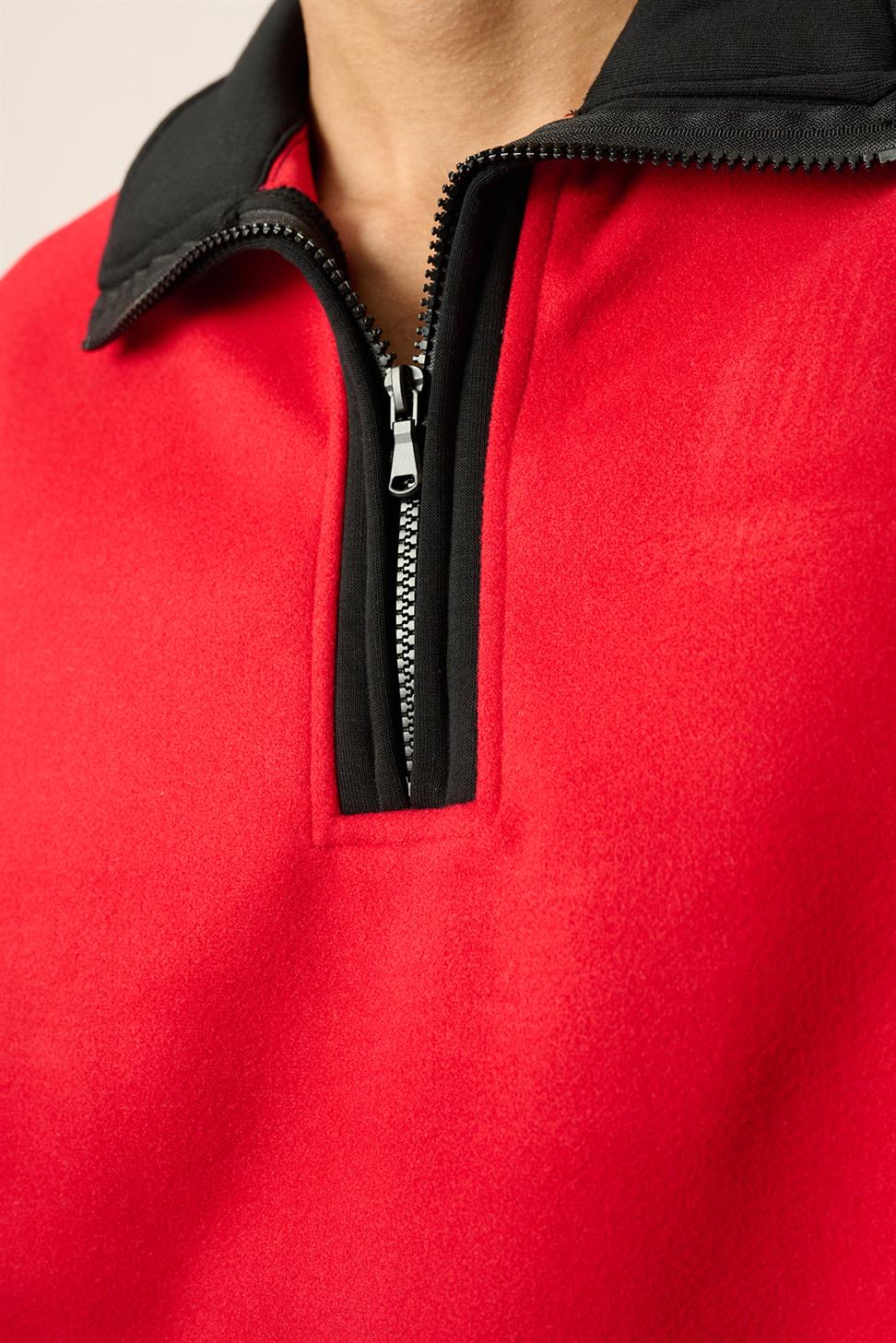 R-5844 Red Half-Zip Contrast Detail Fleece Sweatshirt