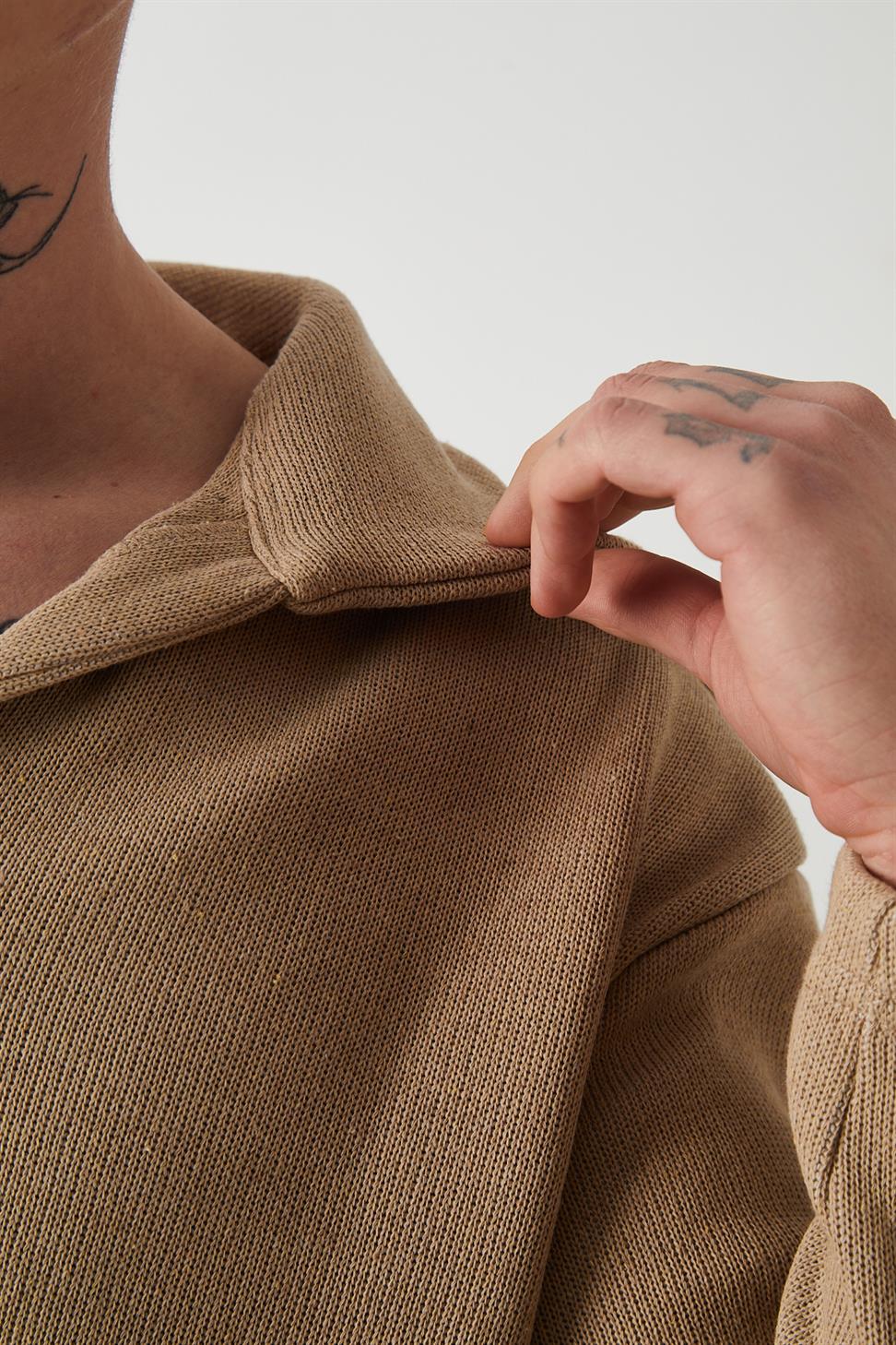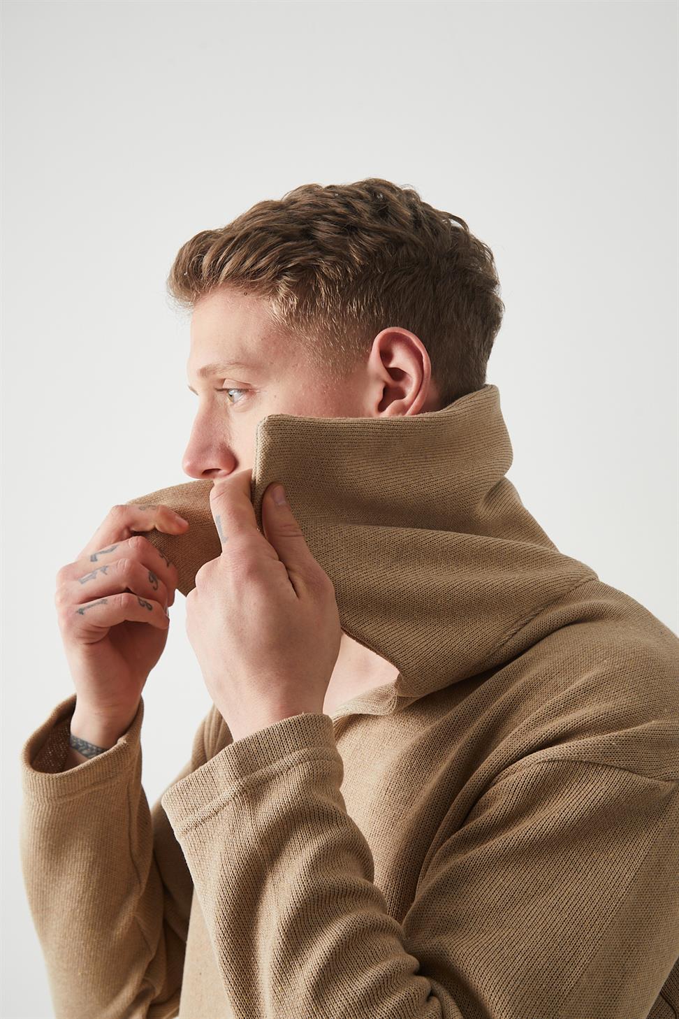 A modern men’s knitted sweatshirt with collar detail in elegant vizon. Its soft neutral tone and versatile design make it perfect for both casual wear and relaxed everyday looks. With the R-5850 style code, this sweatshirt offers a balance of comfort and contemporary style. Easy to pair with jeans, joggers, or chinos, it is a timeless wardrobe essential for effortless dressing.