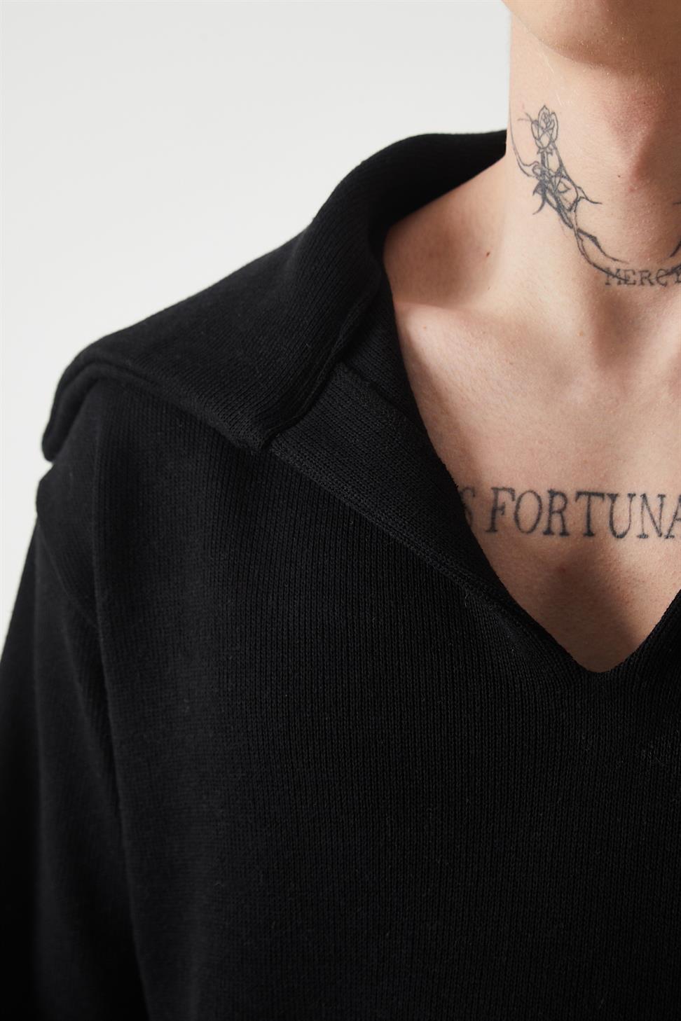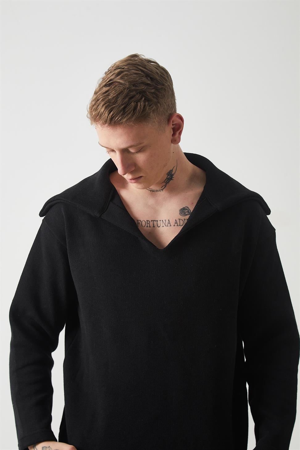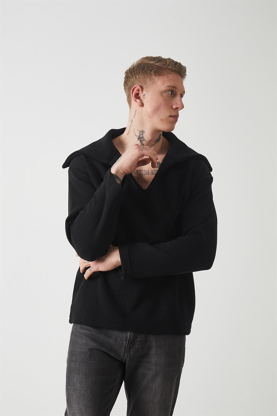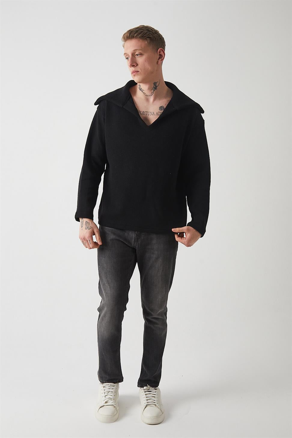 R-5850 Men’s Knitted Sweatshirt with Collar Detail – Black