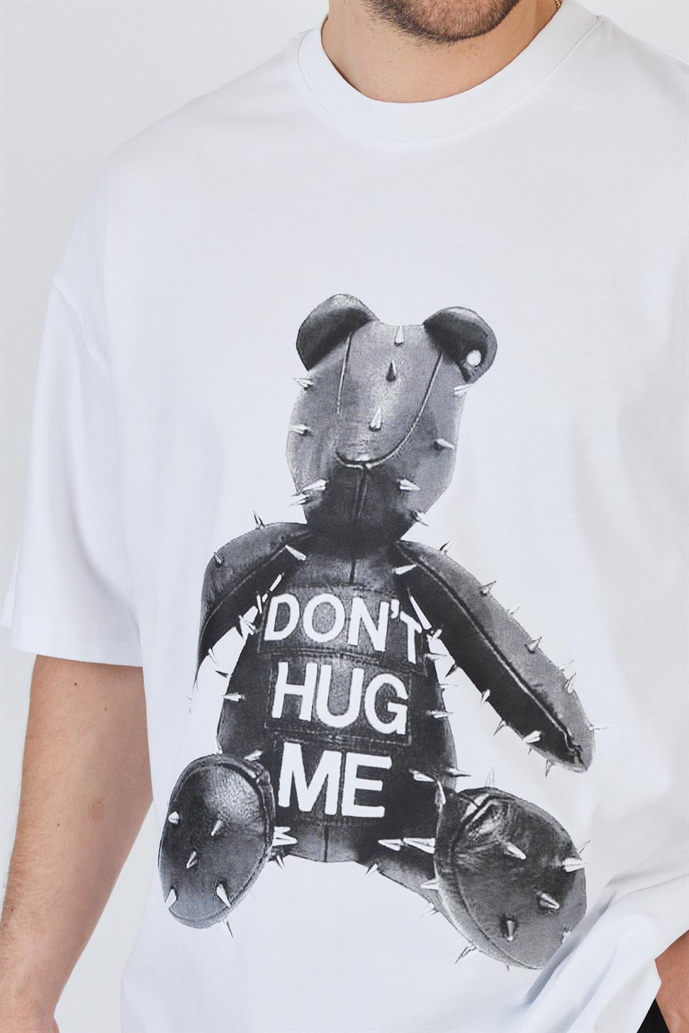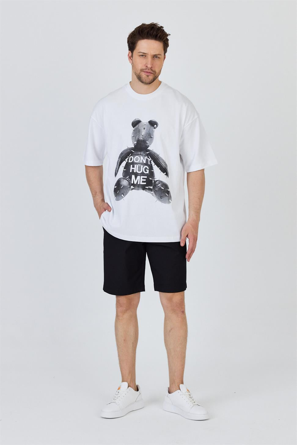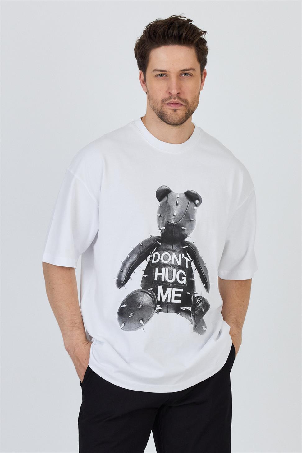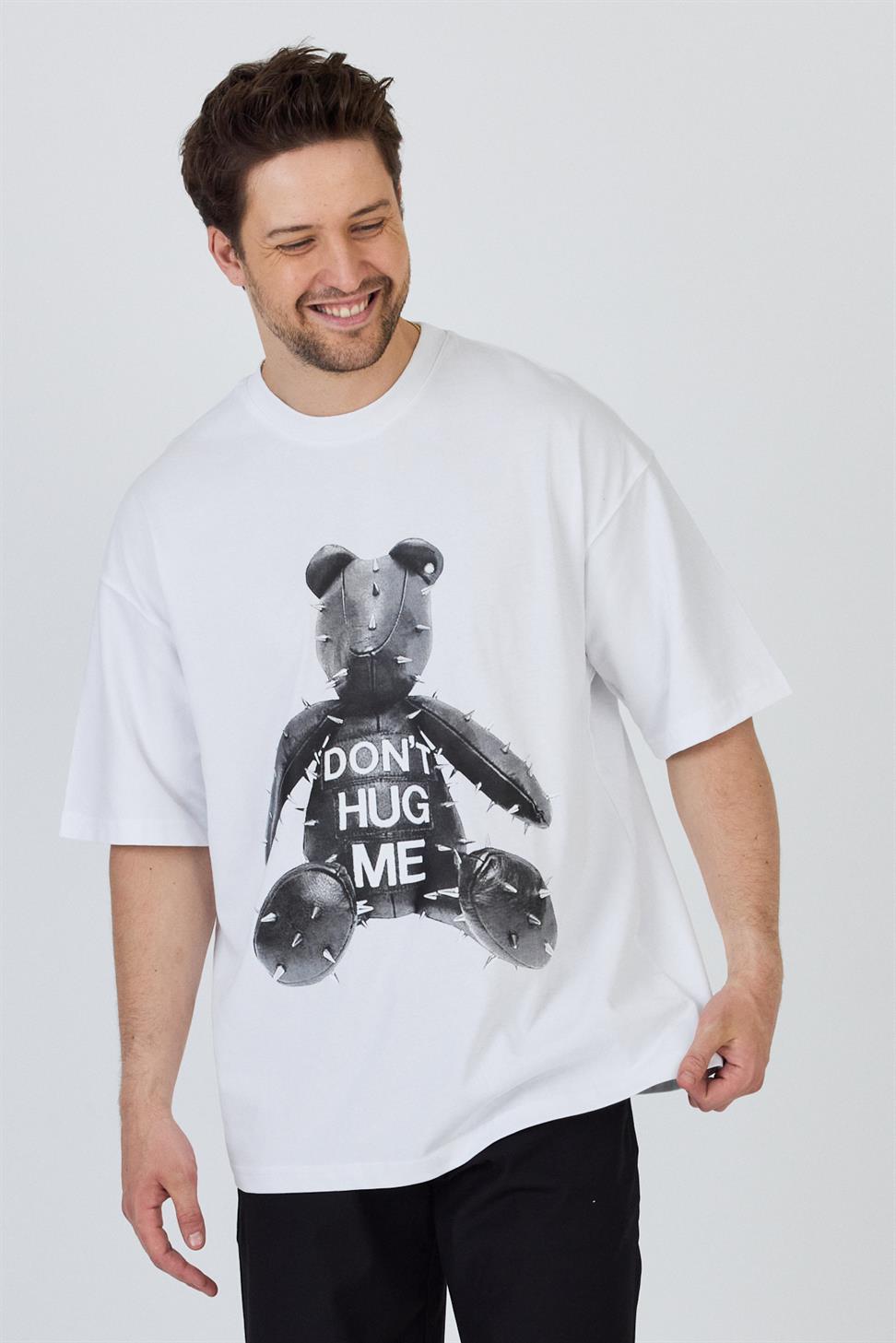 R-5860R-5860 Men’s 100% Cotton Supima Jersey T-Shirt – White Oversize with Bear Print “DON’T HUG ME” Detail