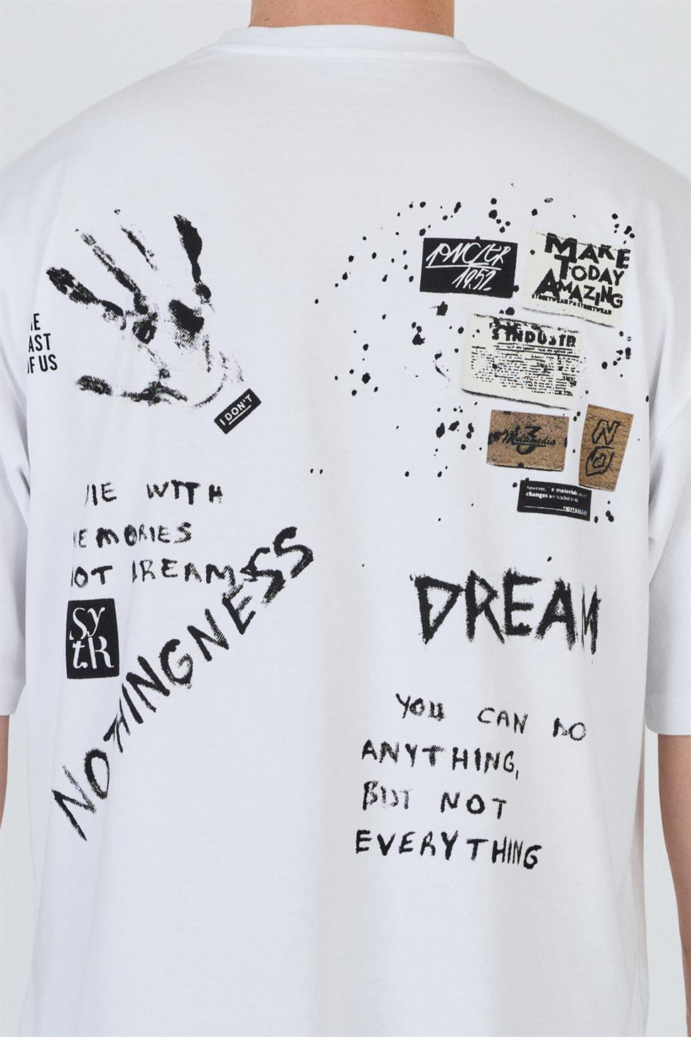 R-5863 R-5863 Men’s 100% Cotton Supima Jersey T-Shirt – White Oversize with Front & Back Print Detail