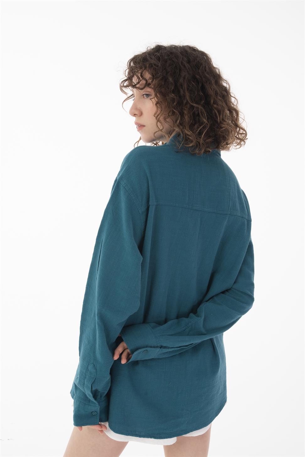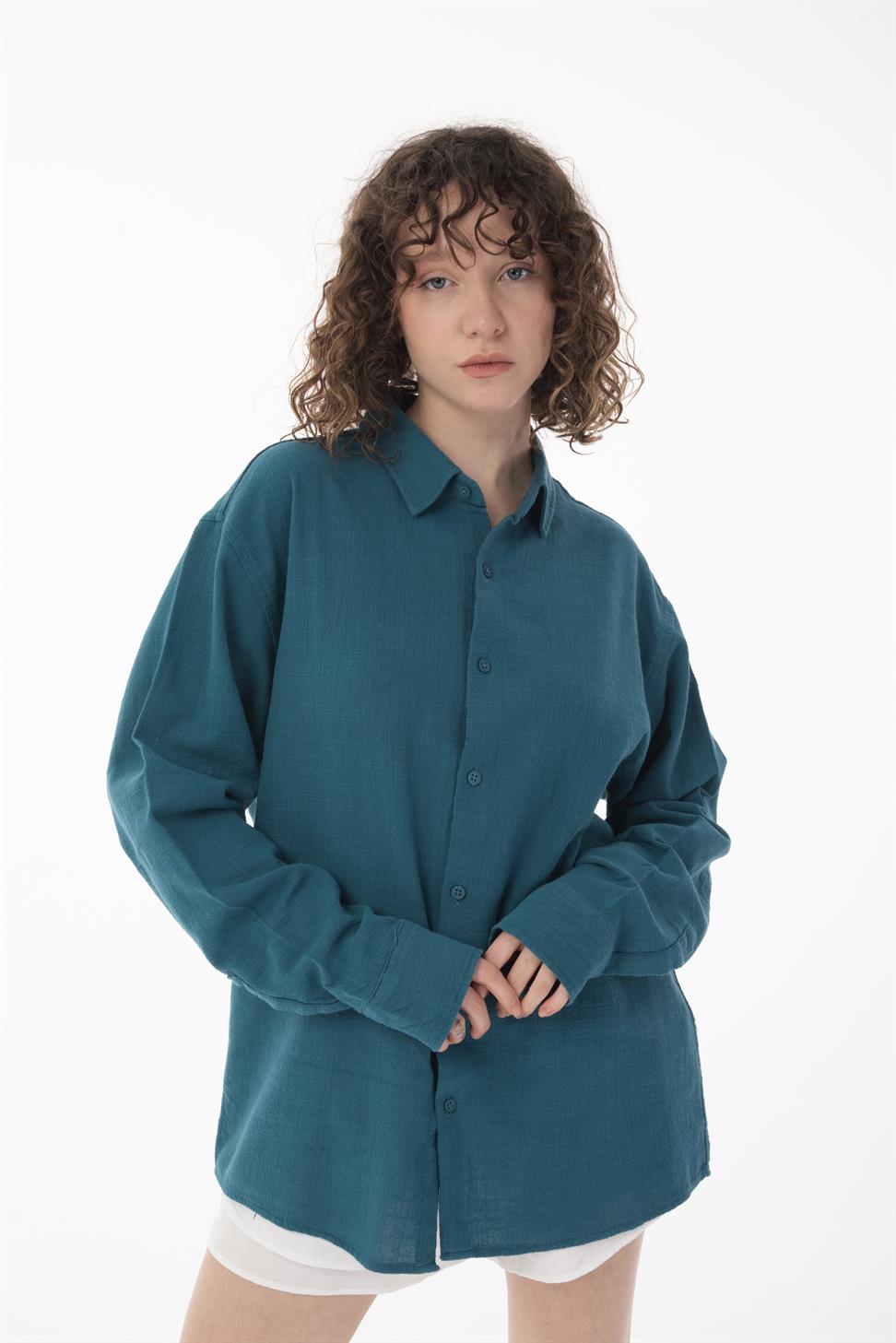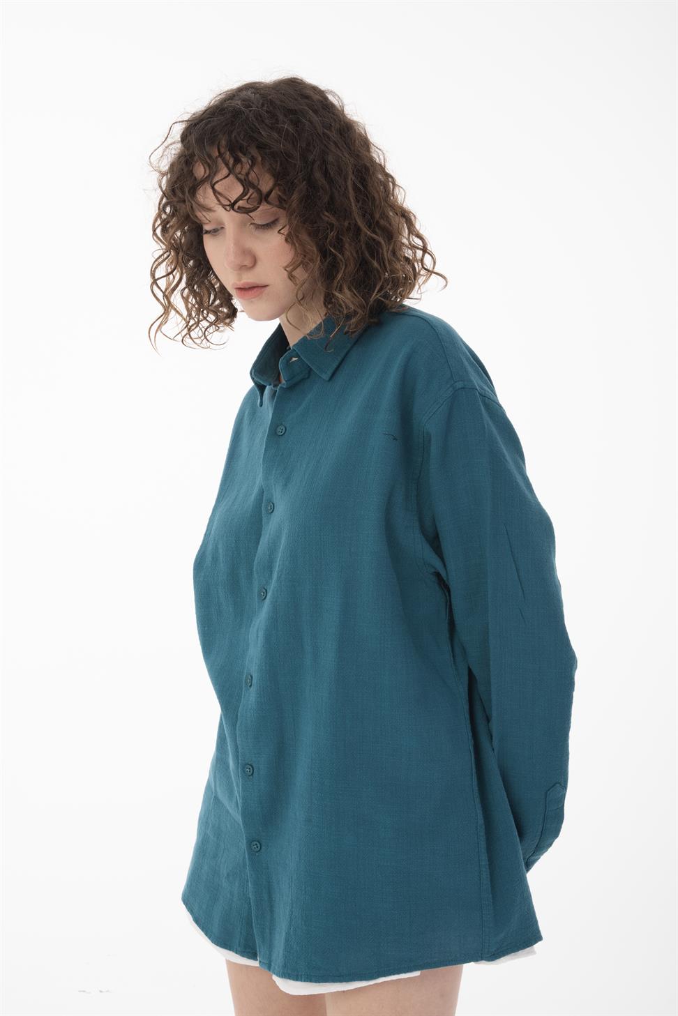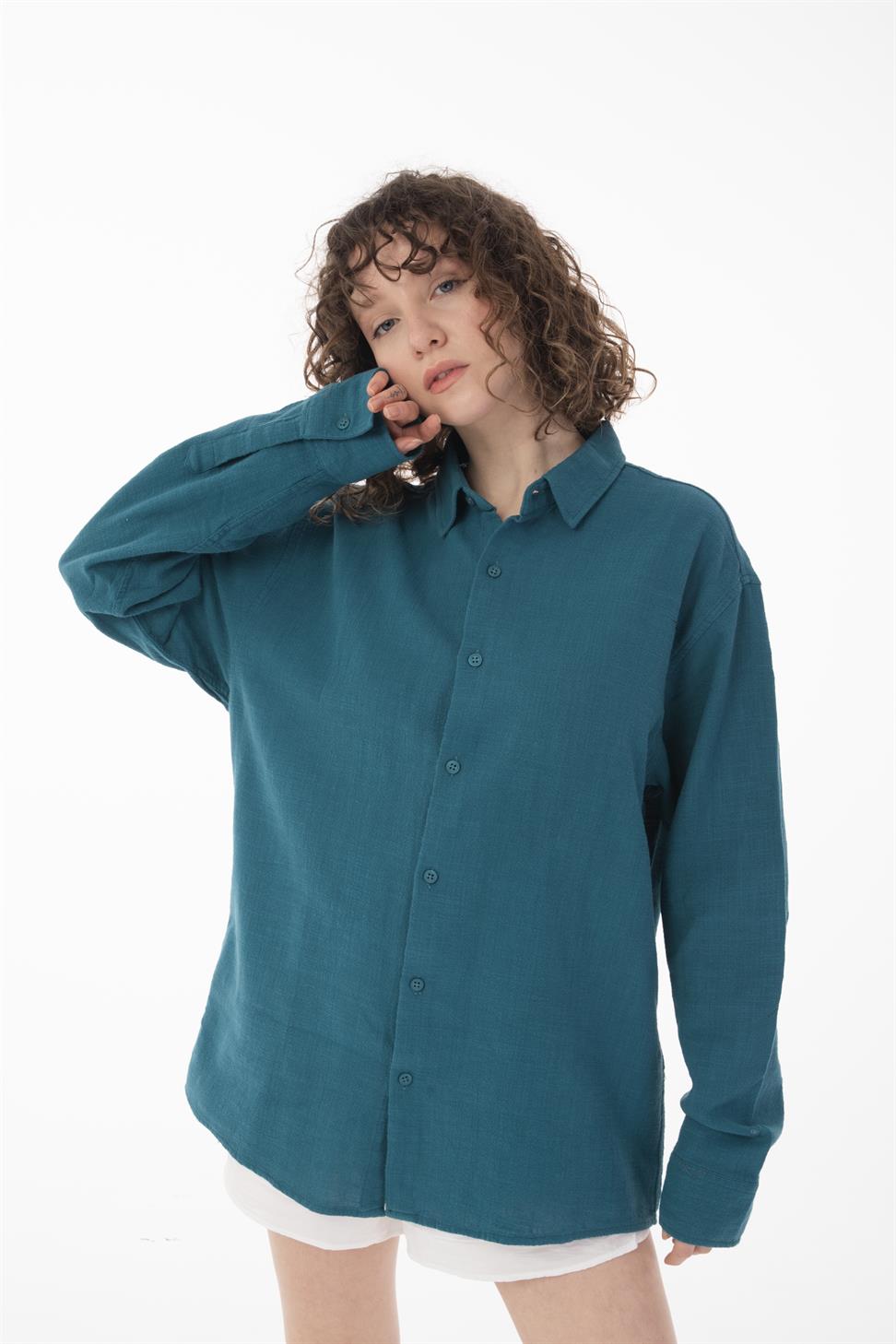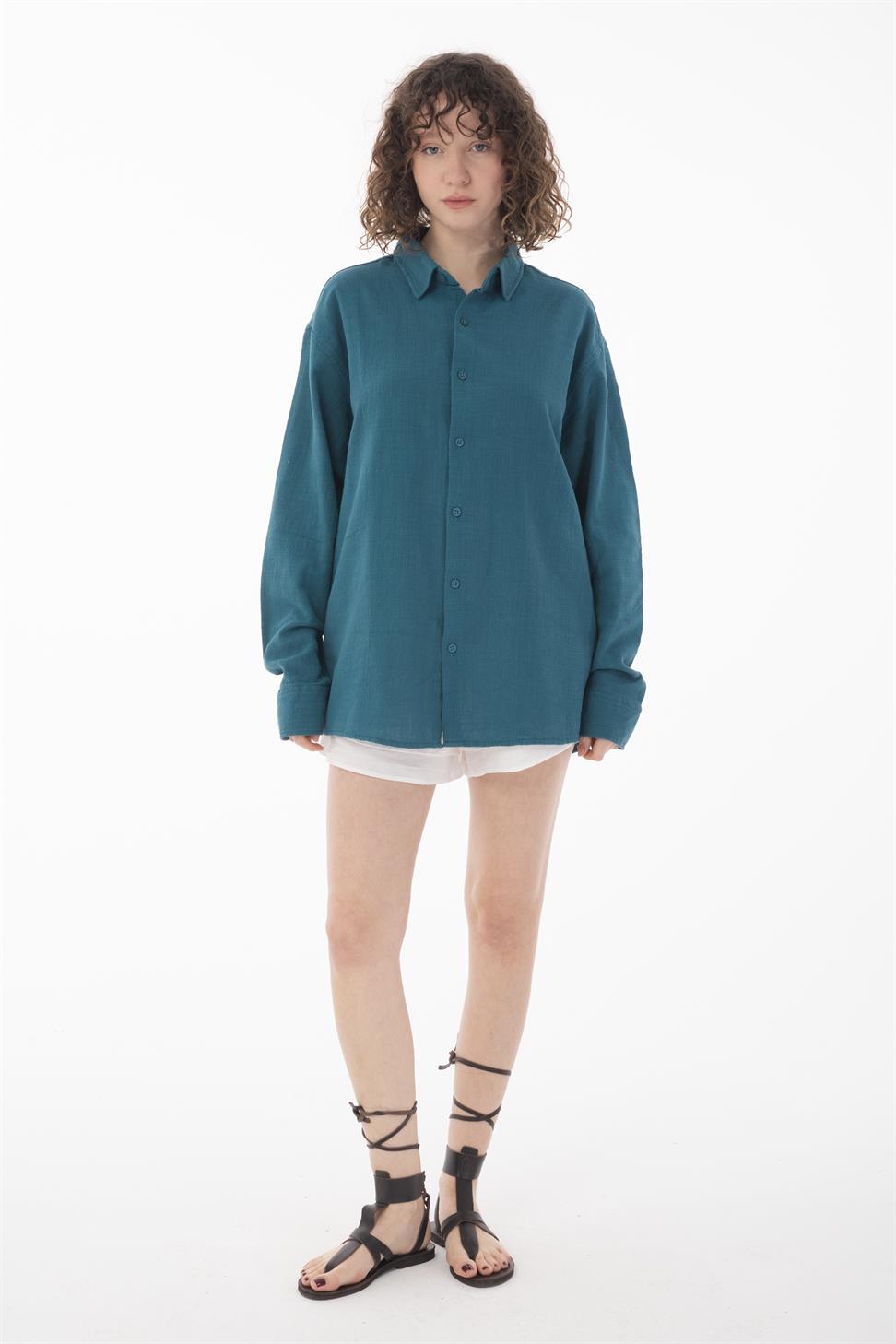 A modern men’s stand collar long sleeve shirt in unique petrol green. Its refined color and minimalist design make it a versatile choice for both everyday wear and smart occasions. Crafted from a breathable blend of 65% cotton and 35% polyester linen, this shirt delivers comfort, durability, and a lightweight feel. Easy to pair with chinos, jeans, or tailored trousers, it adds a stylish touch to any wardrobe.
