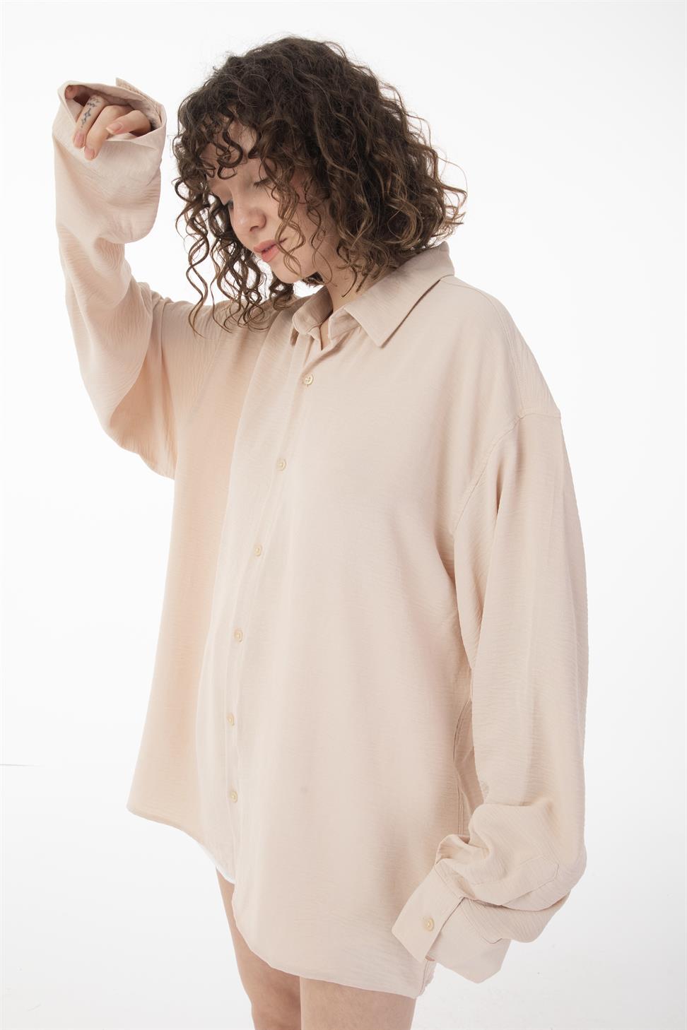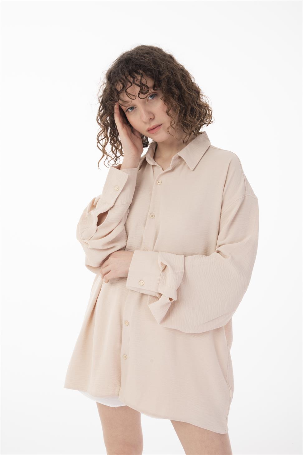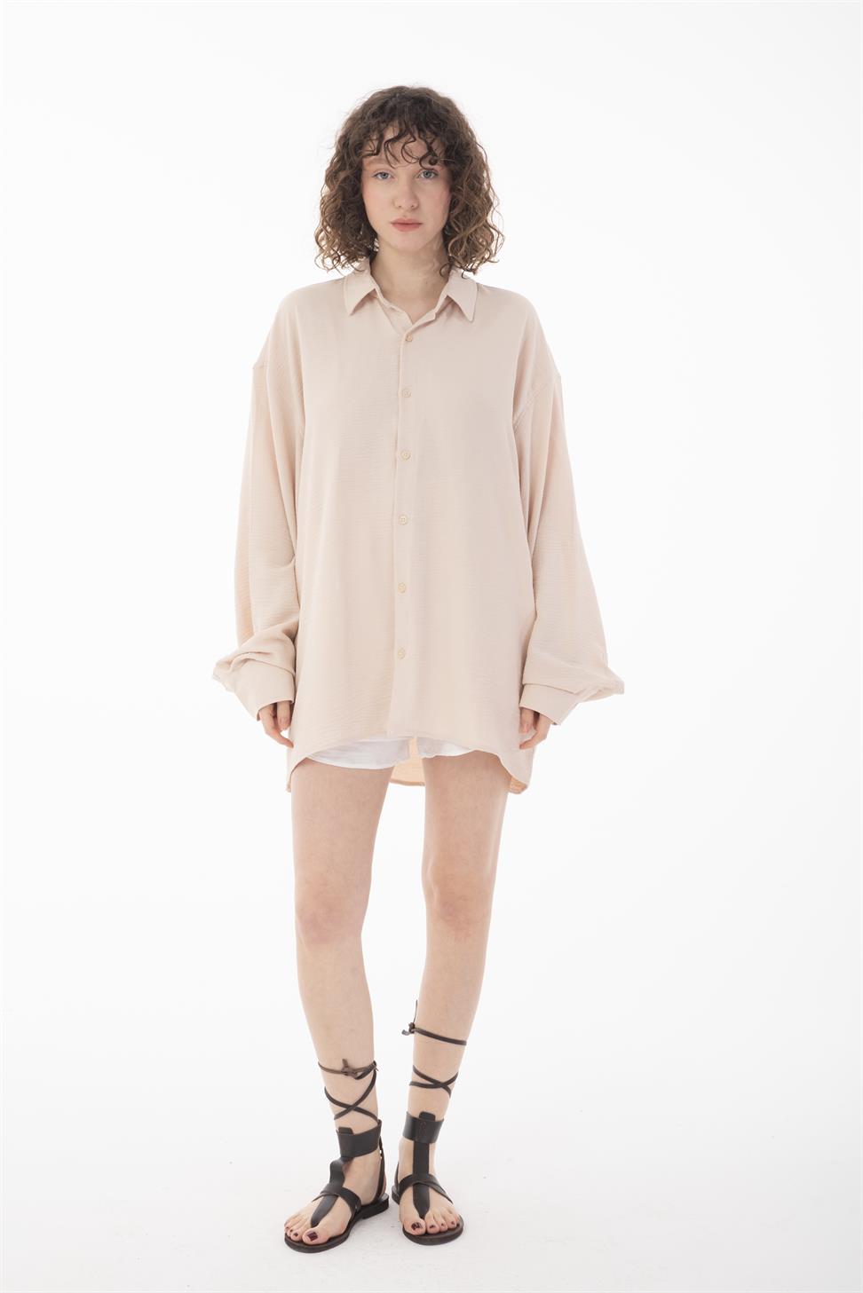 The stand collar (band collar) design brings a modern and minimal touch, while the oversize fit allows ease of movement and a contemporary silhouette. This versatile shirt works perfectly for both casual and smart-casual occasions.