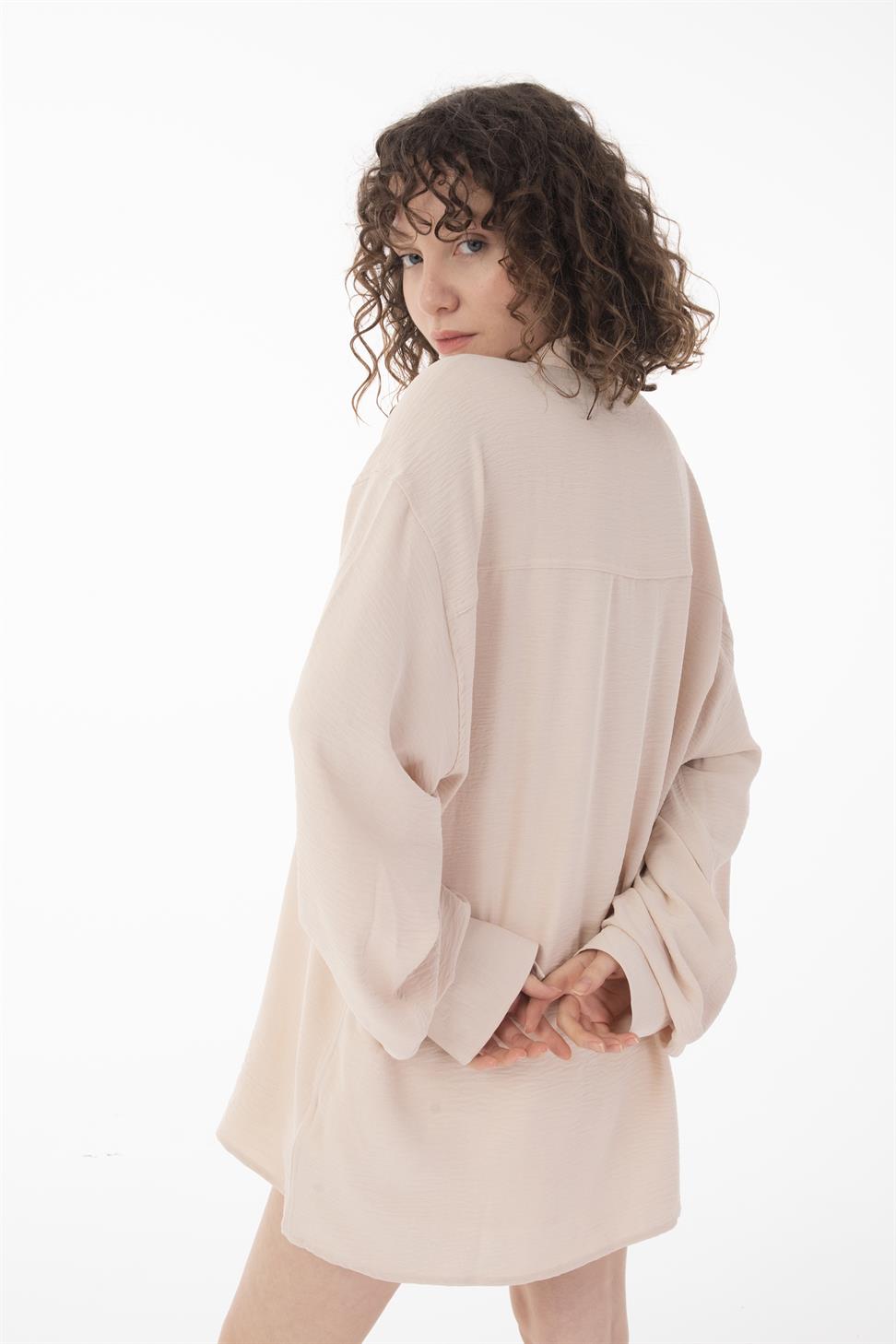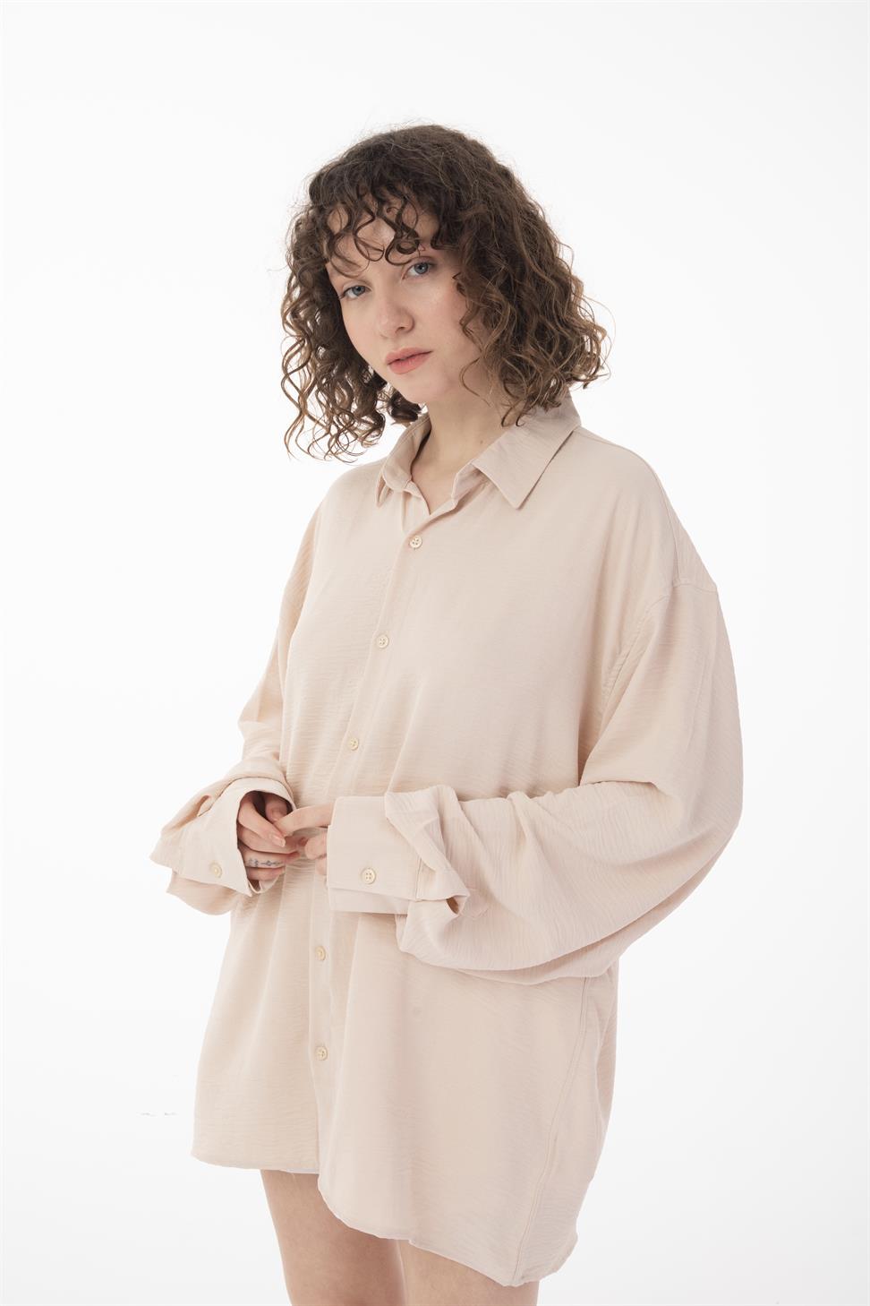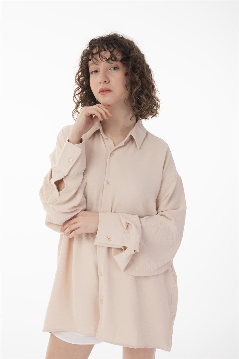 The stand collar (band collar) design brings a modern and minimal touch, while the oversize fit allows ease of movement and a contemporary silhouette. This versatile shirt works perfectly for both casual and smart-casual occasions.