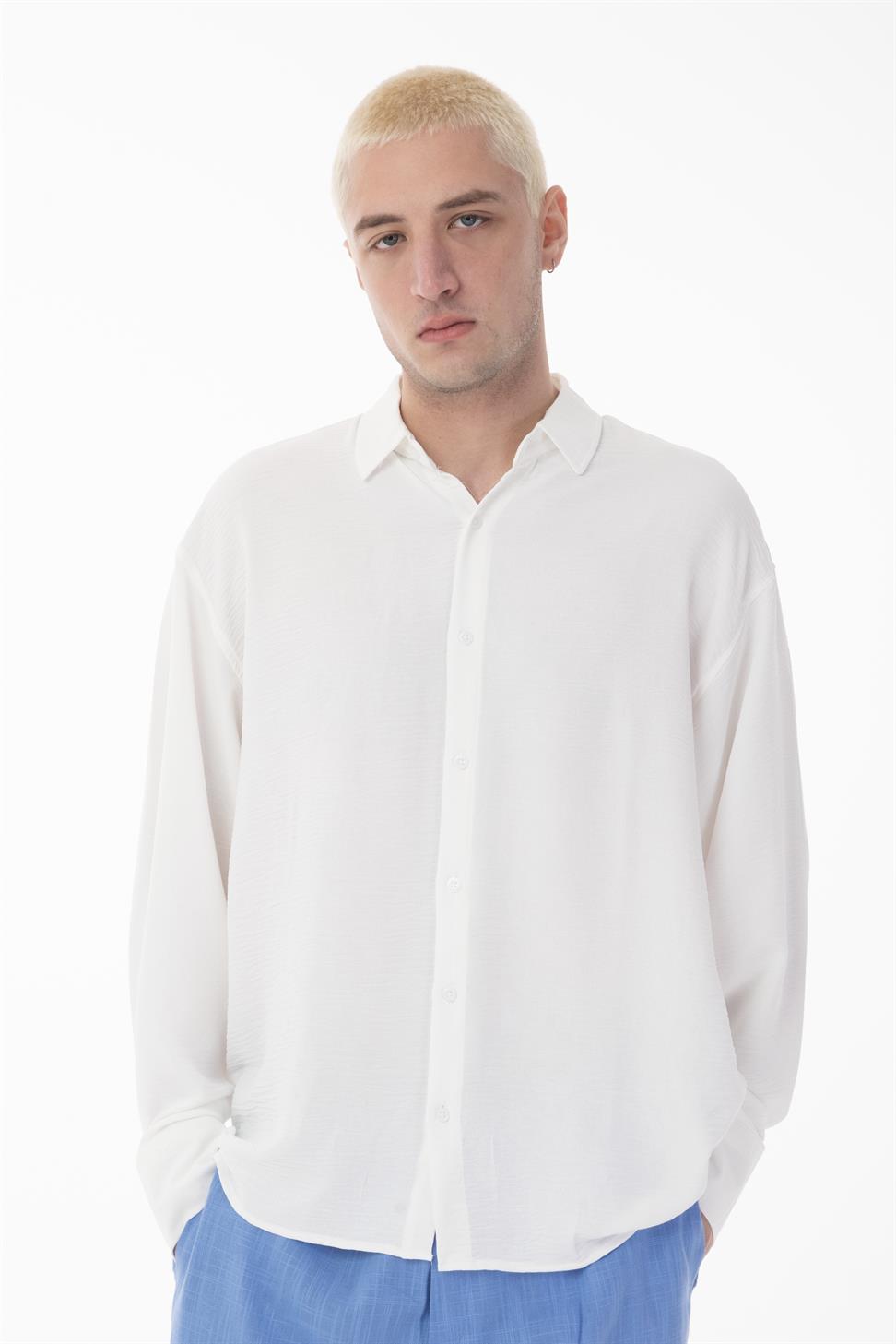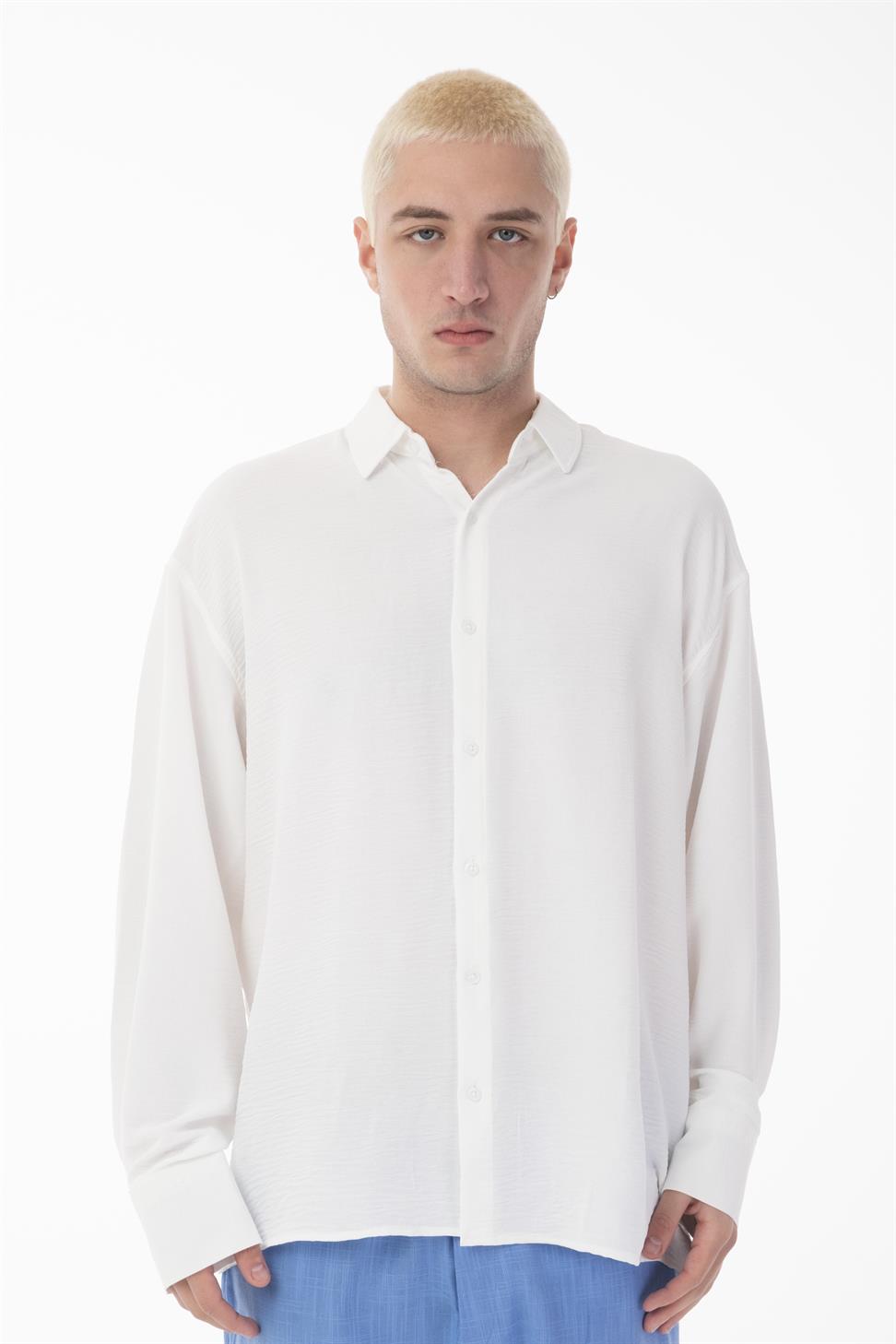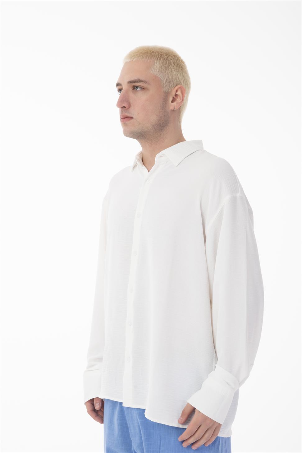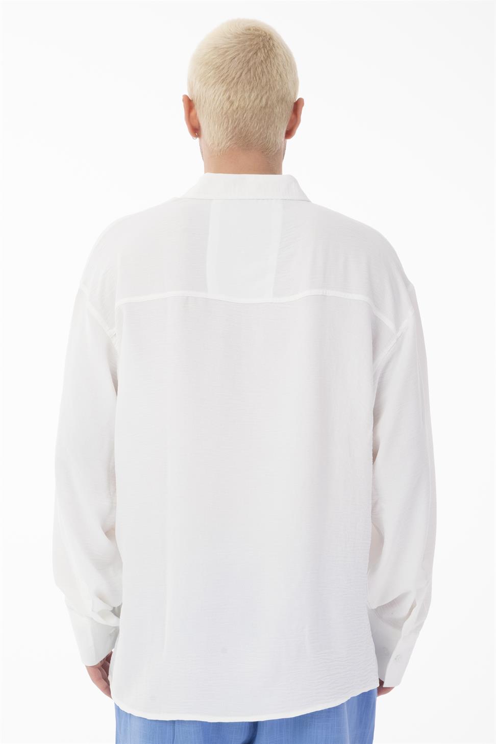 The stand collar (band collar) design brings a modern and minimal touch, while the oversize fit allows ease of movement and a contemporary silhouette. This versatile shirt works perfectly for both casual and smart-casual occasions.