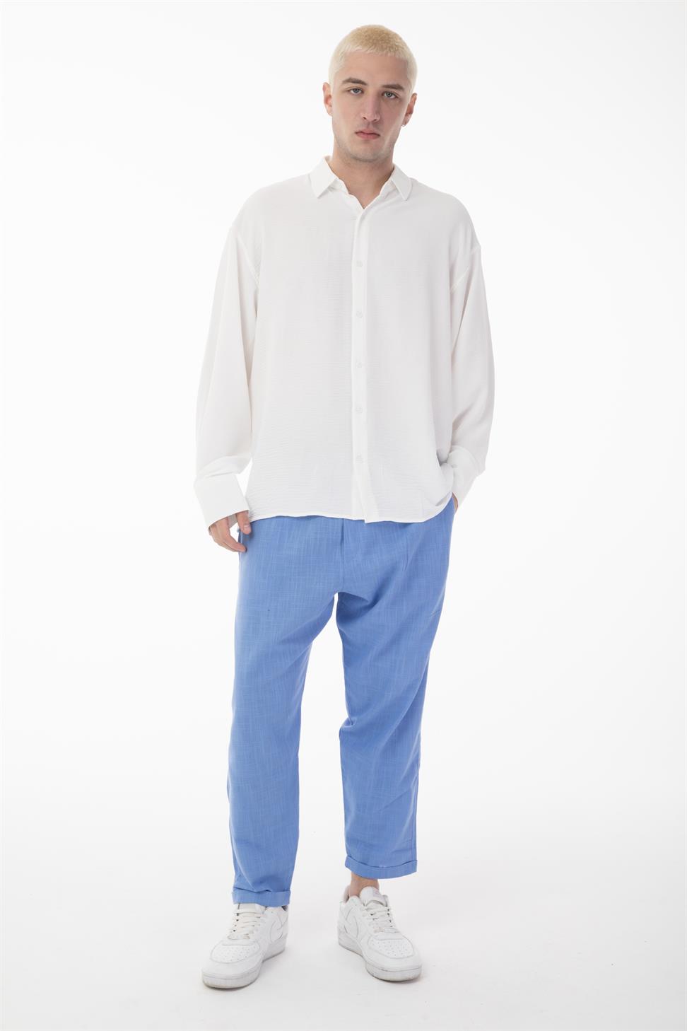 R-6047 Men’s Stand Collar Long Sleeve Shirt – 100% Polyester Aerobin Fabric, Oversize Fit