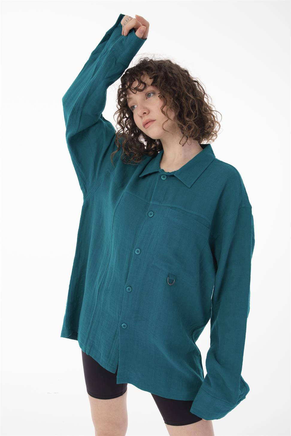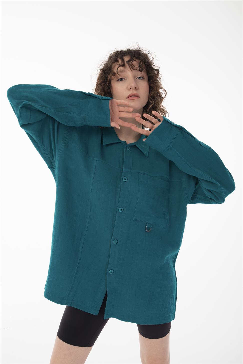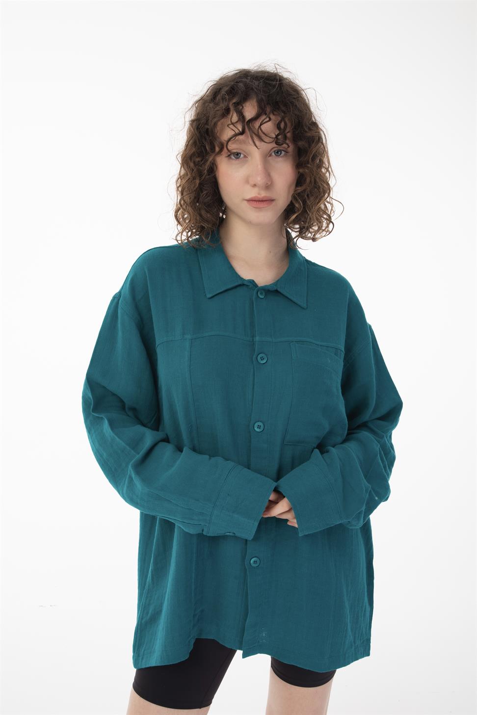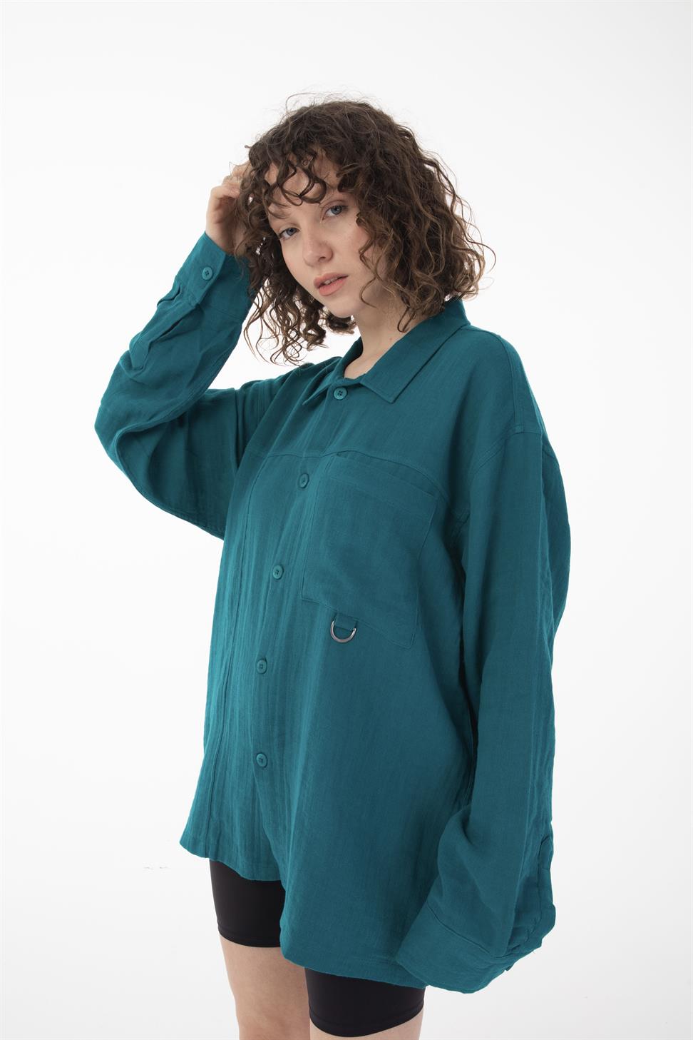 R-6052 Men’s Stand Collar Pocket Detail Long Sleeve Muslin Shirt – Green
