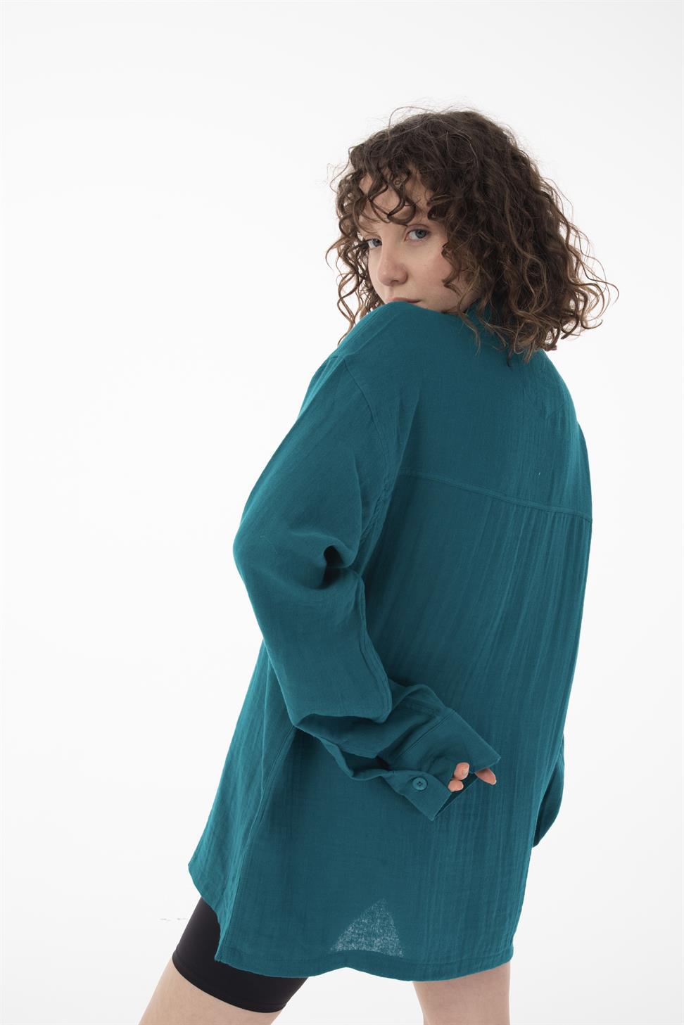 A stylish men’s stand collar long sleeve shirt with pocket detail in elegant green. Its fresh color and modern design make it a versatile choice for both casual outings and smart-casual occasions. Crafted from 100% cotton muslin fabric, it offers breathability, softness, and a lightweight feel, ensuring all-day comfort. Easy to pair with jeans, chinos, or shorts, this shirt is a must-have staple for every wardrobe.