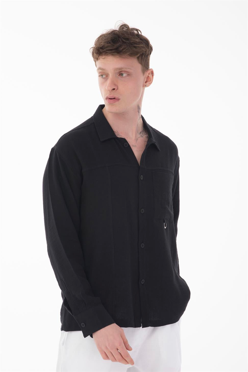 A relaxed men’s stand collar long sleeve shirt with pocket detail, designed for effortless style and comfort. Crafted from 100% cotton muslin fabric, it is lightweight, breathable, and soft against the skin, making it perfect for all-day wear. Its versatile design allows you to pair it easily with jeans, chinos, or shorts for both casual and smart-casual looks. A timeless wardrobe essential for modern men.