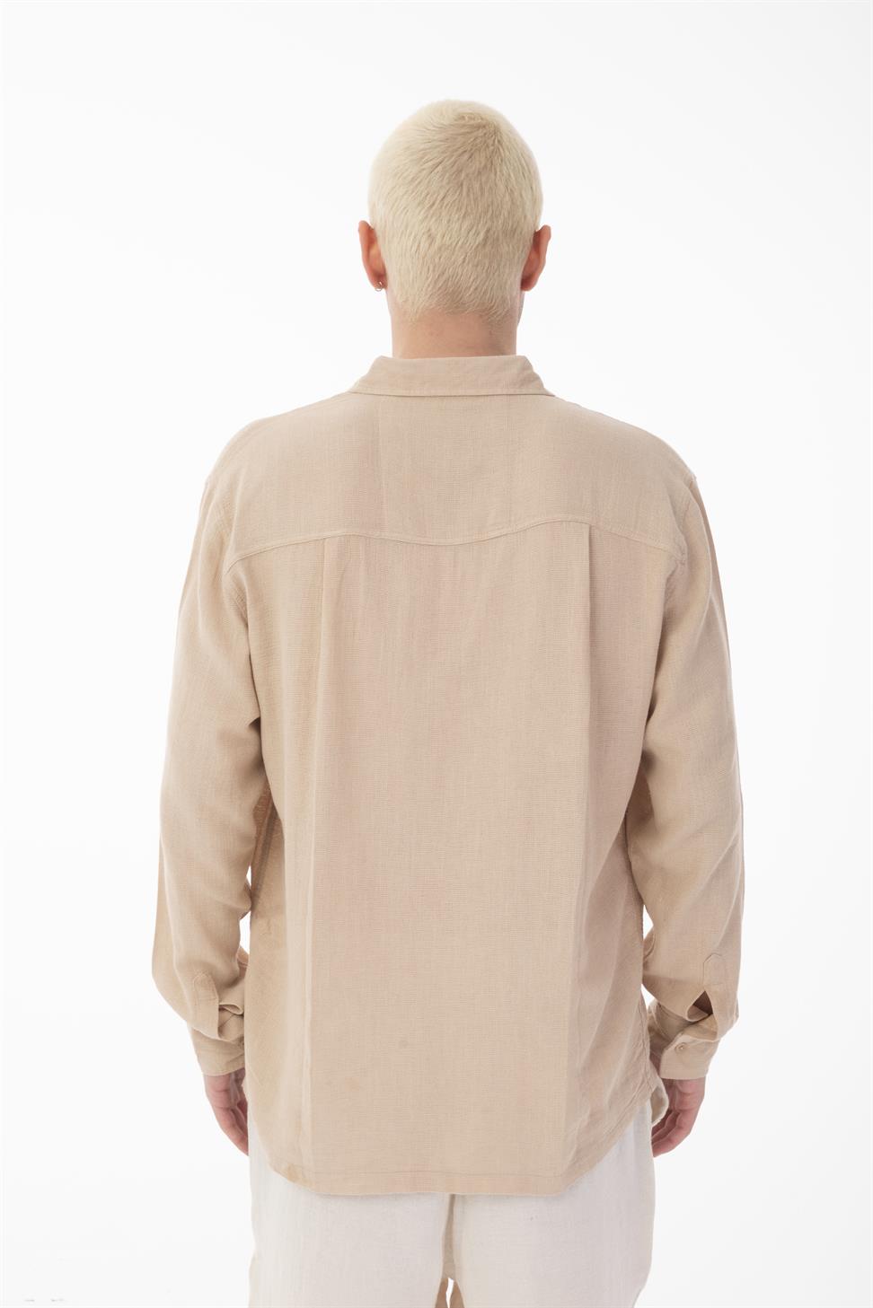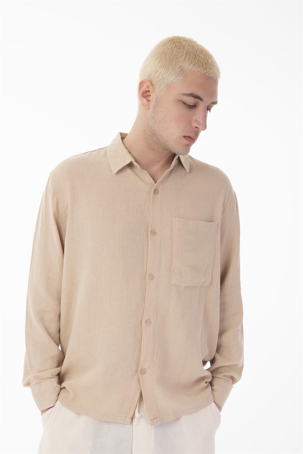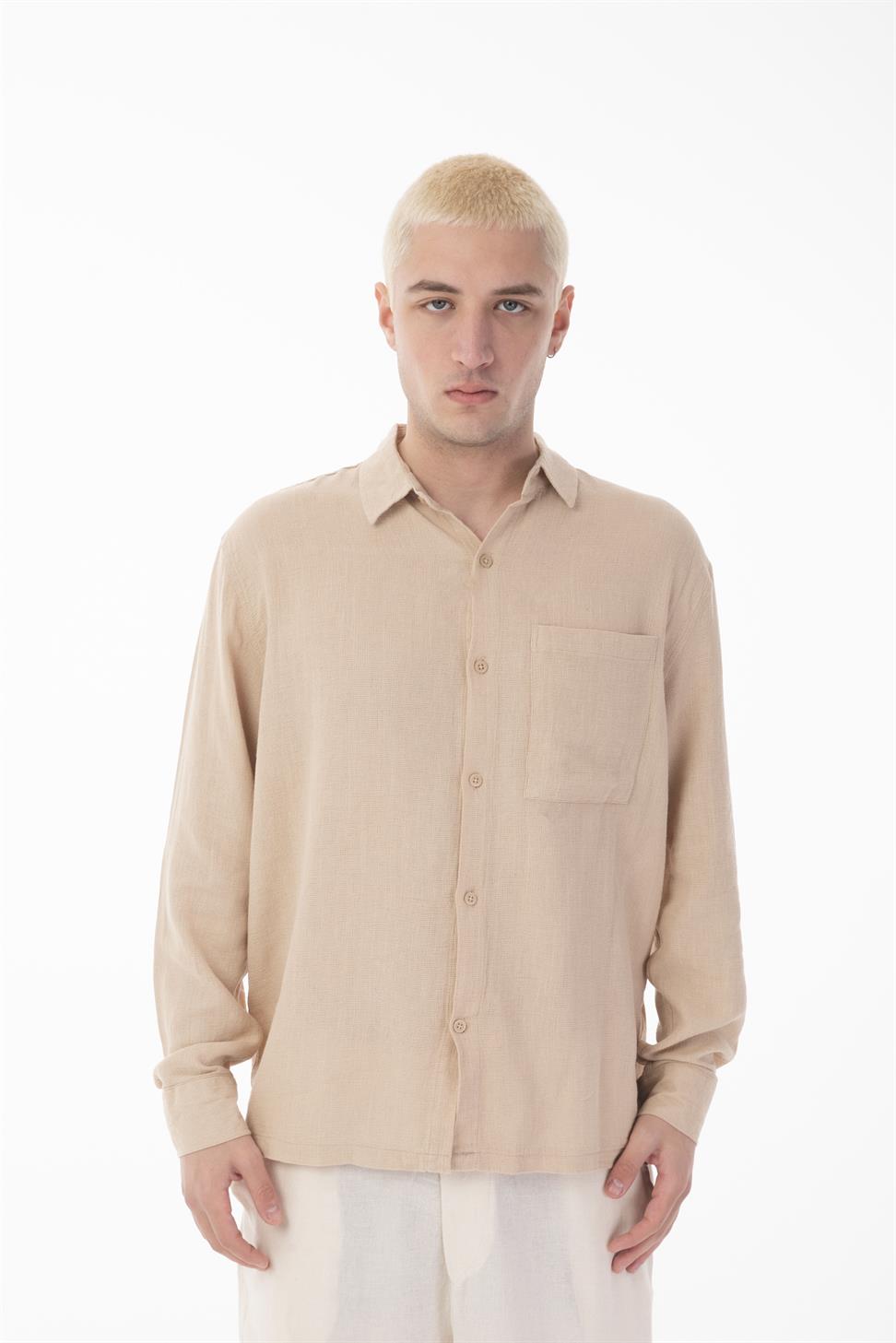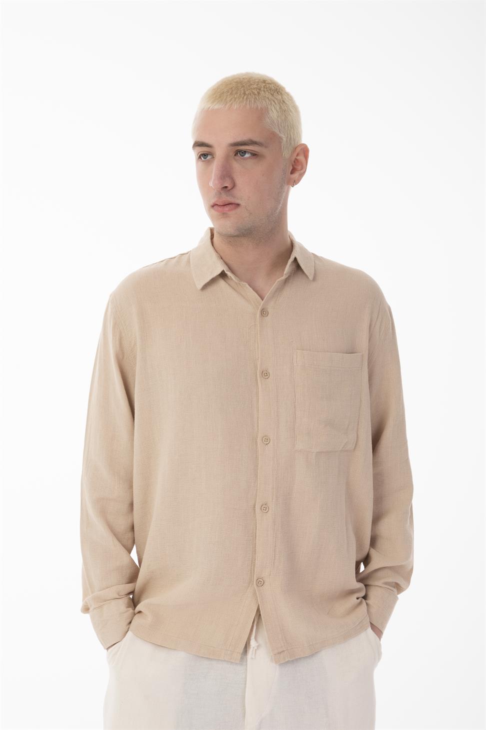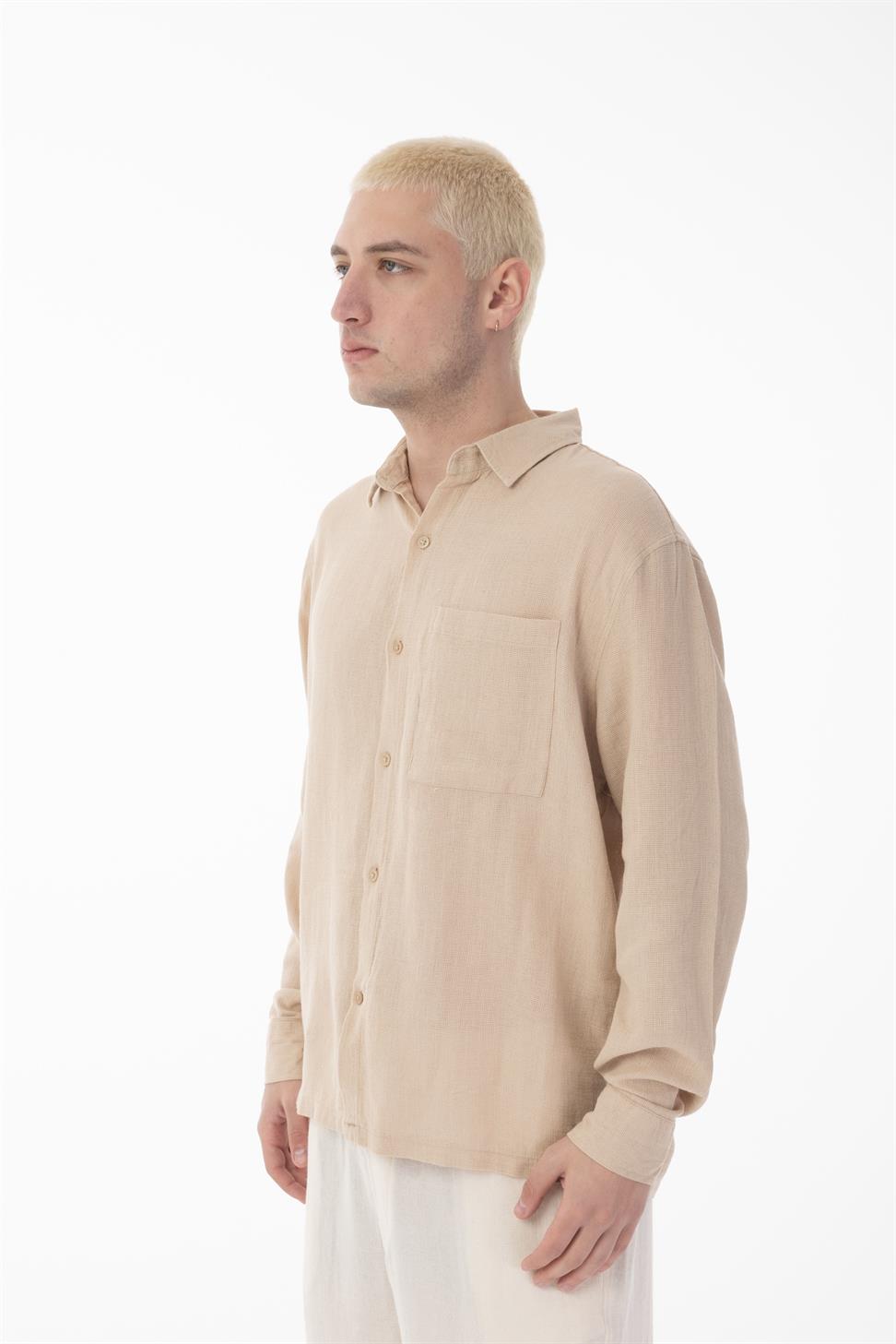A modern men’s stand collar long sleeve shirt with a single pocket detail in elegant vizon. Its soft neutral tone and minimalist design make it a versatile option for both casual wear and semi-formal occasions. Crafted from 100% cotton etamine fabric, it offers excellent breathability, softness, and durability, ensuring all-day comfort. Perfect to style with jeans, chinos, or tailored trousers, this shirt is a timeless addition to any wardrobe.