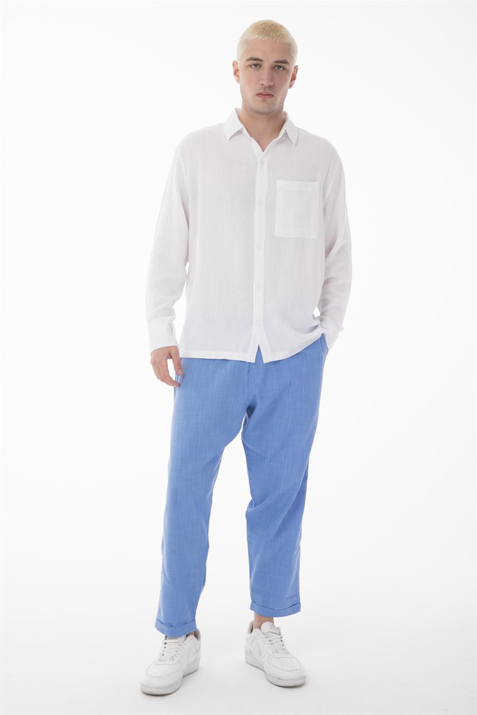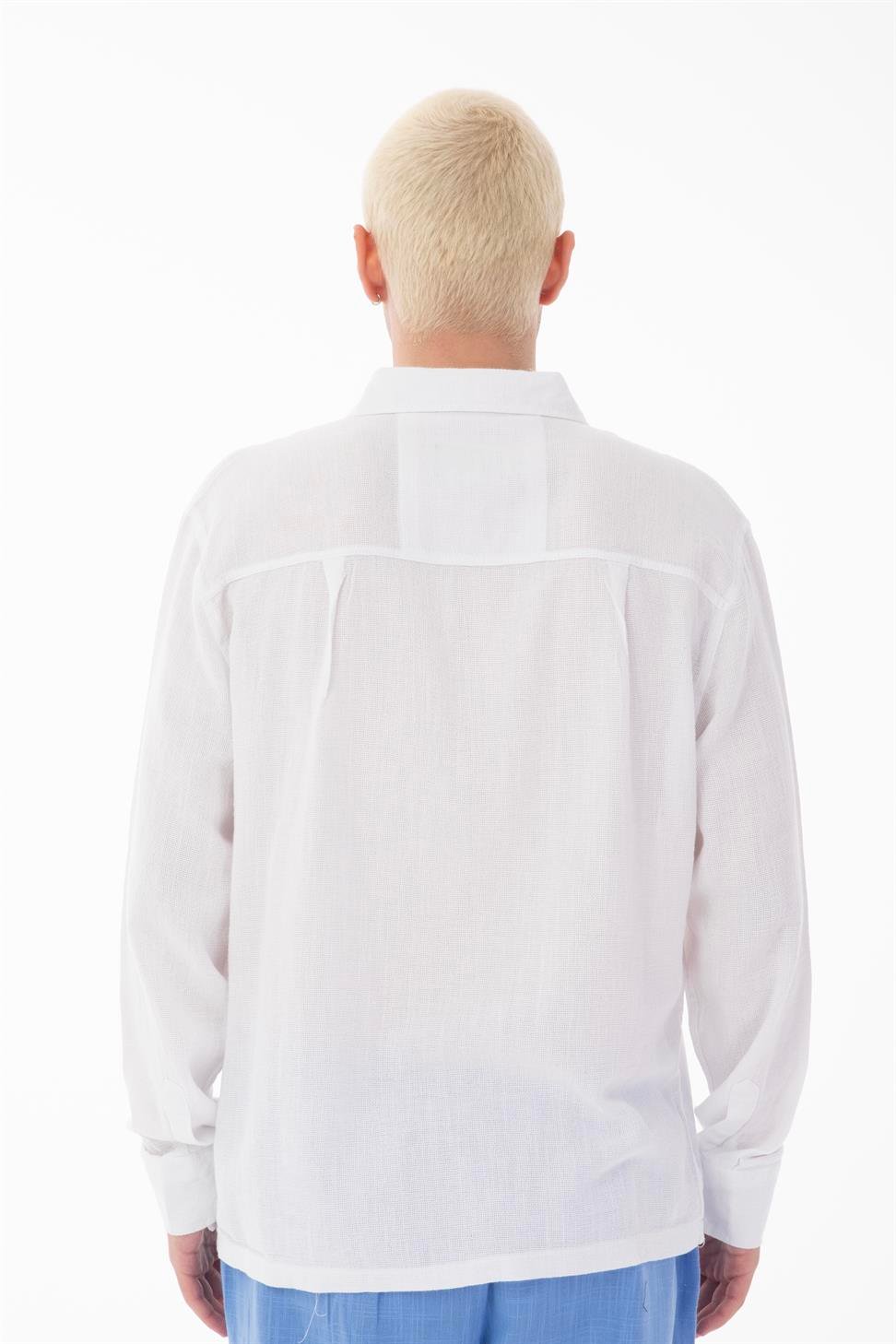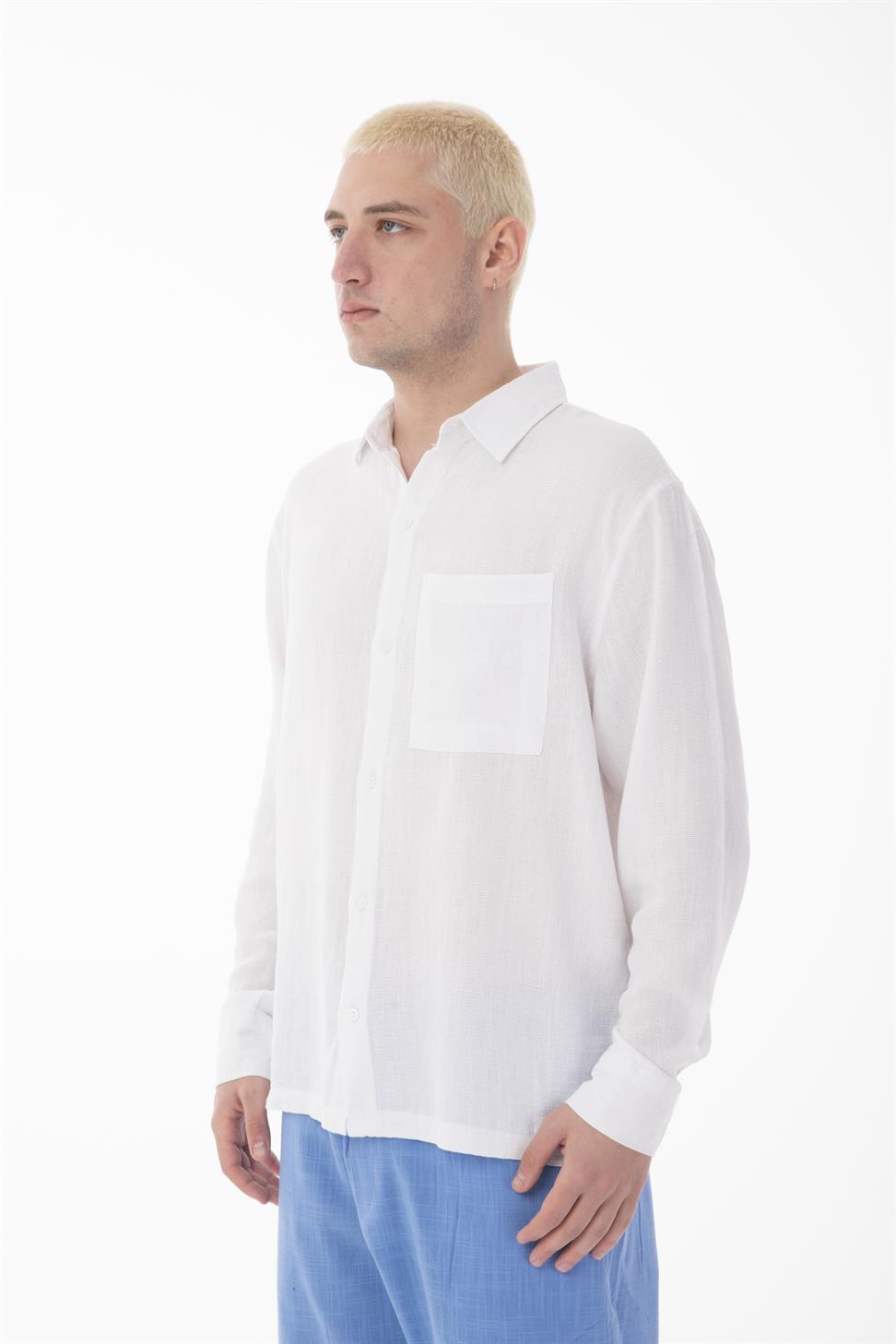 A refined men’s stand collar long sleeve shirt with a single pocket detail in crisp white. Its minimalist design and versatile look make it suitable for both casual wear and semi-formal occasions. Crafted from 100% cotton etamine fabric, it provides excellent breathability, softness, and lasting comfort throughout the day. Easy to pair with jeans, chinos, or tailored trousers, this shirt is a timeless wardrobe essential.