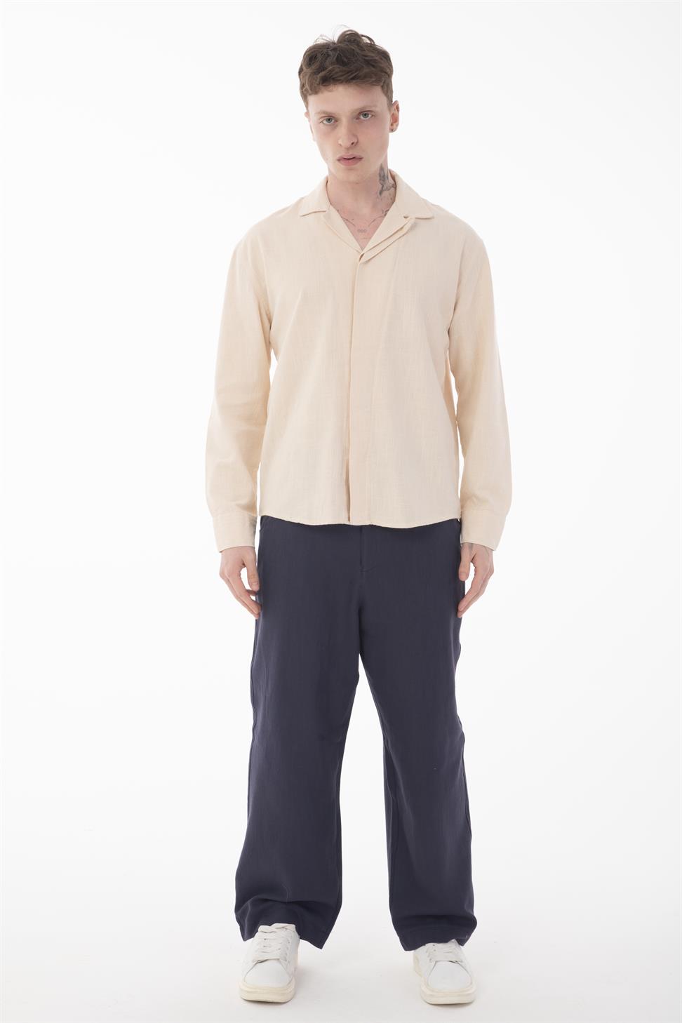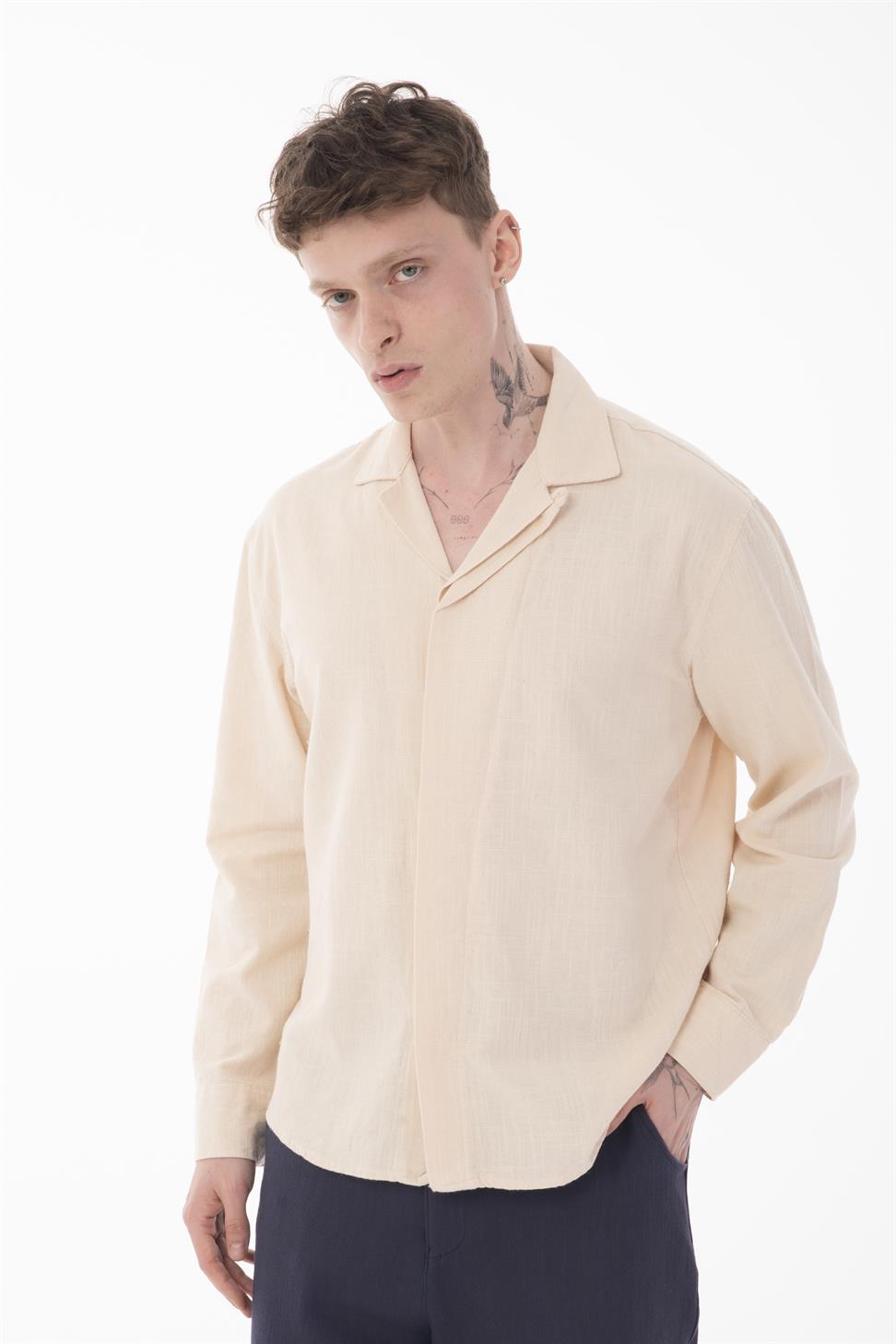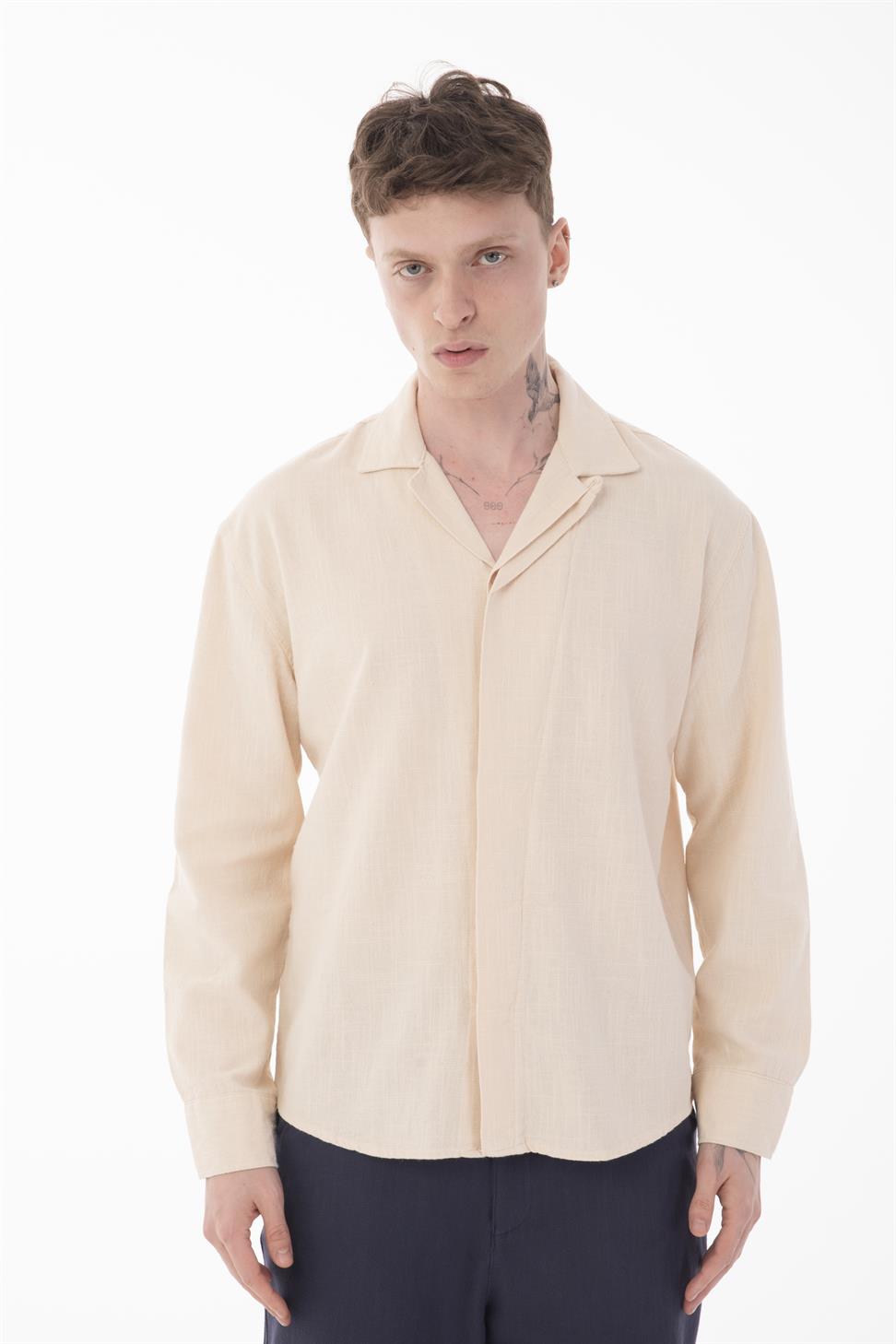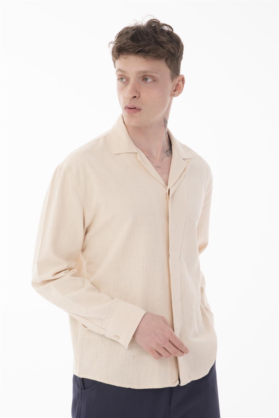 A versatile men’s long sleeve shirt with a hidden placket detail in elegant beige. Its neutral tone and modern cut make it suitable for both casual styling and more formal occasions. Crafted from 100% cotton-linen fabric, it provides excellent breathability, softness, and durability for all-day comfort. Perfect to combine with jeans, chinos, or tailored trousers, this shirt is a timeless addition to any wardrobe.