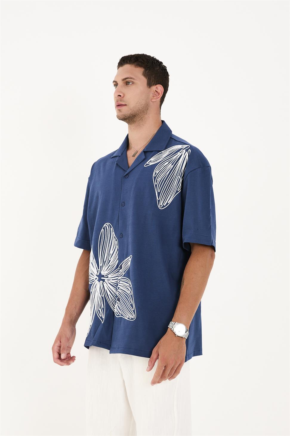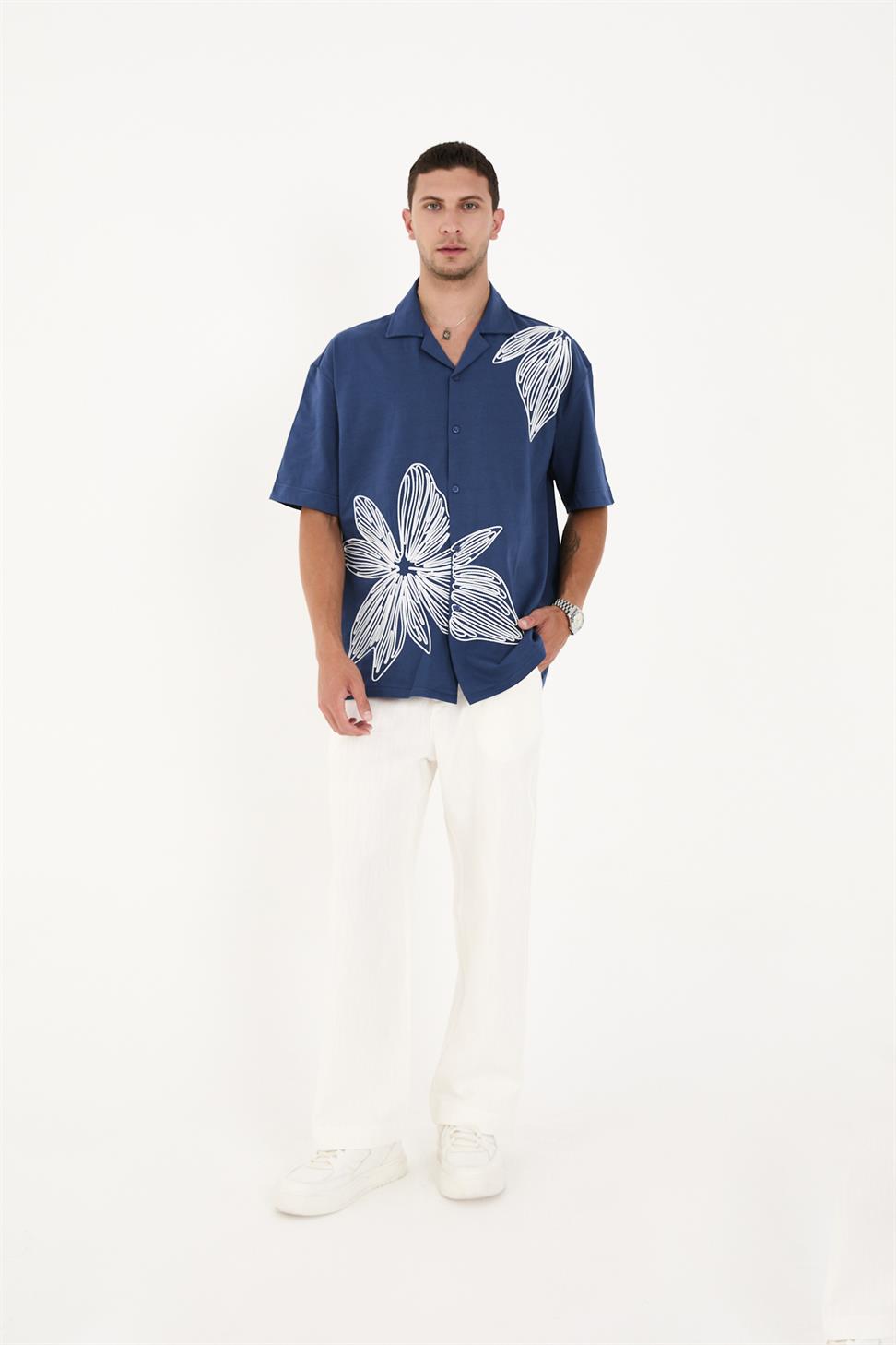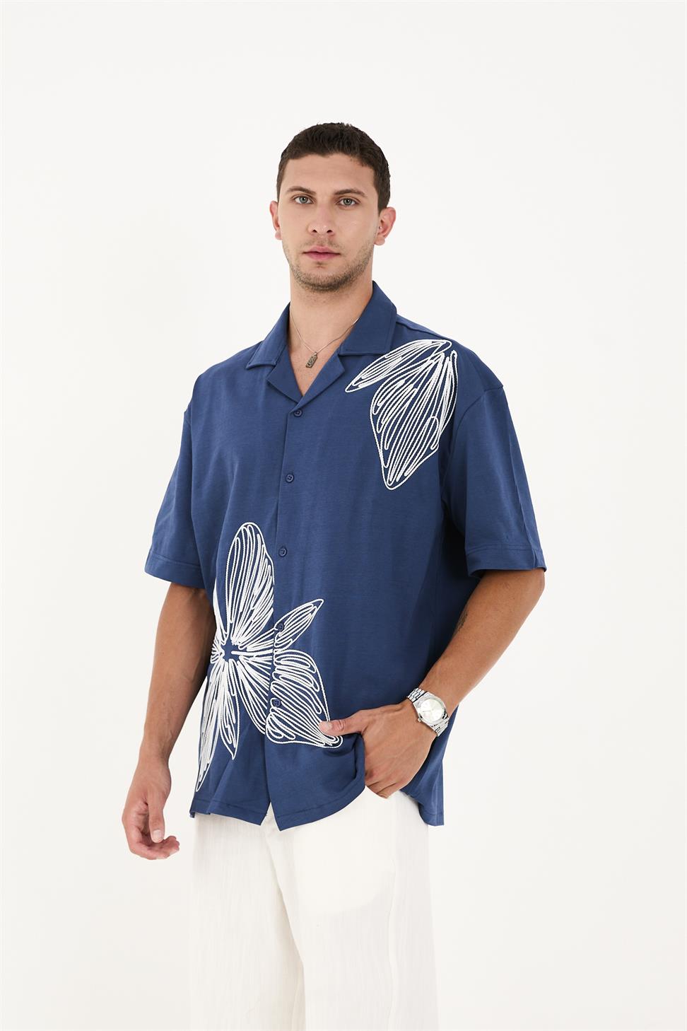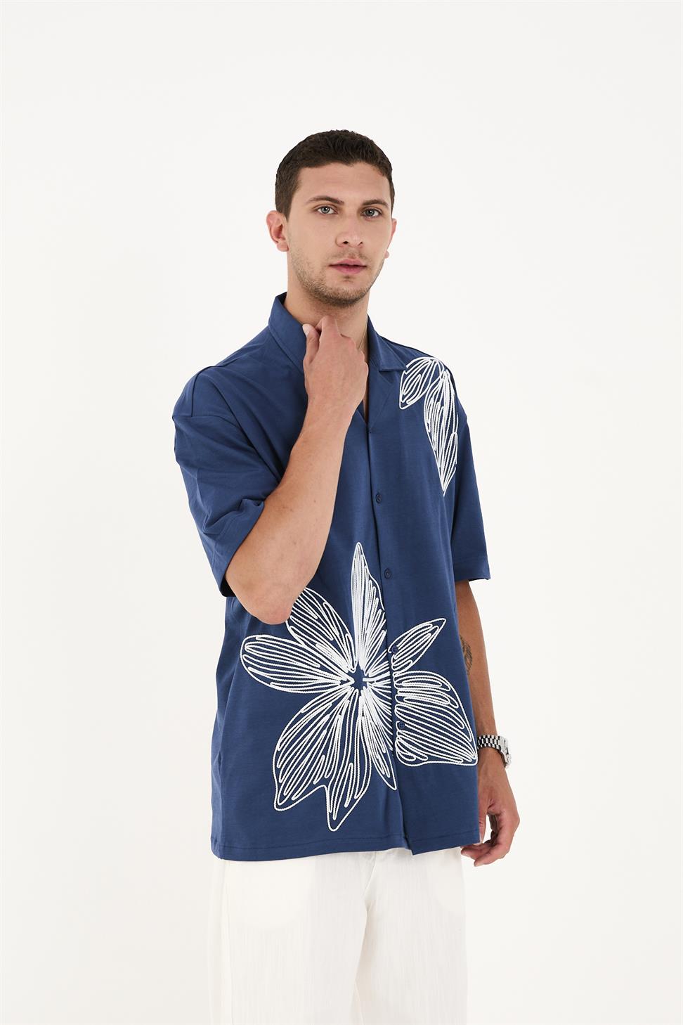 The Cuban collar design and relaxed fit bring effortless style, while the subtle floral embroidery in tonal stitching adds a touch of sophistication. Whether paired with chinos for a smart evening look or with shorts for a laid-back summer vibe, this shirt is a versatile essential.