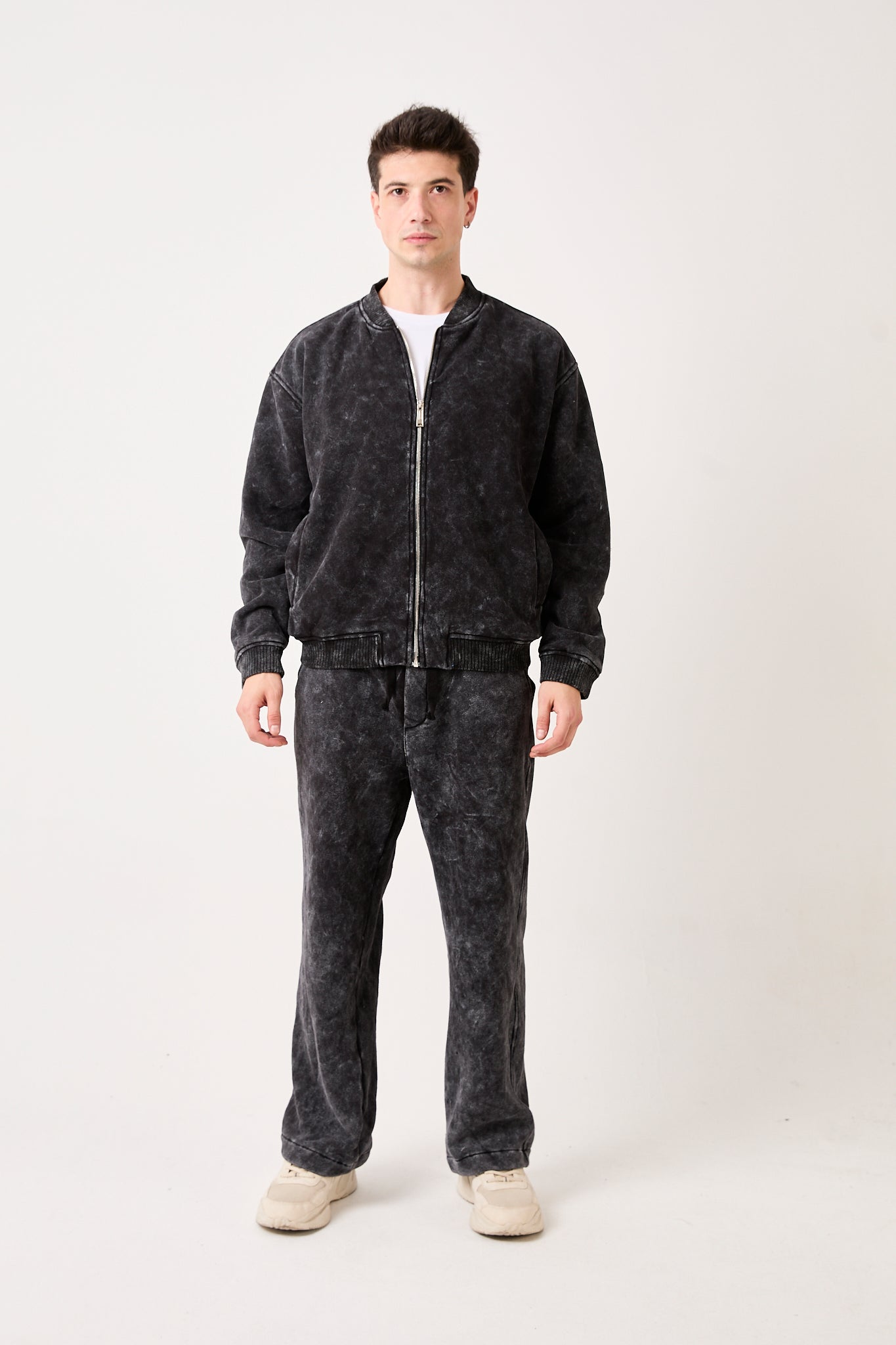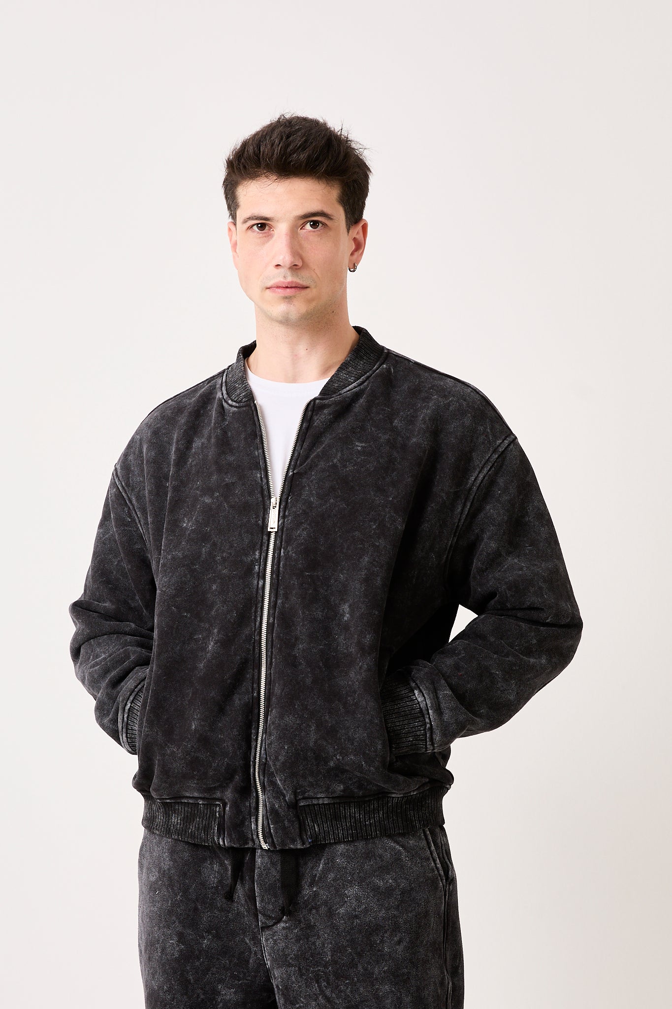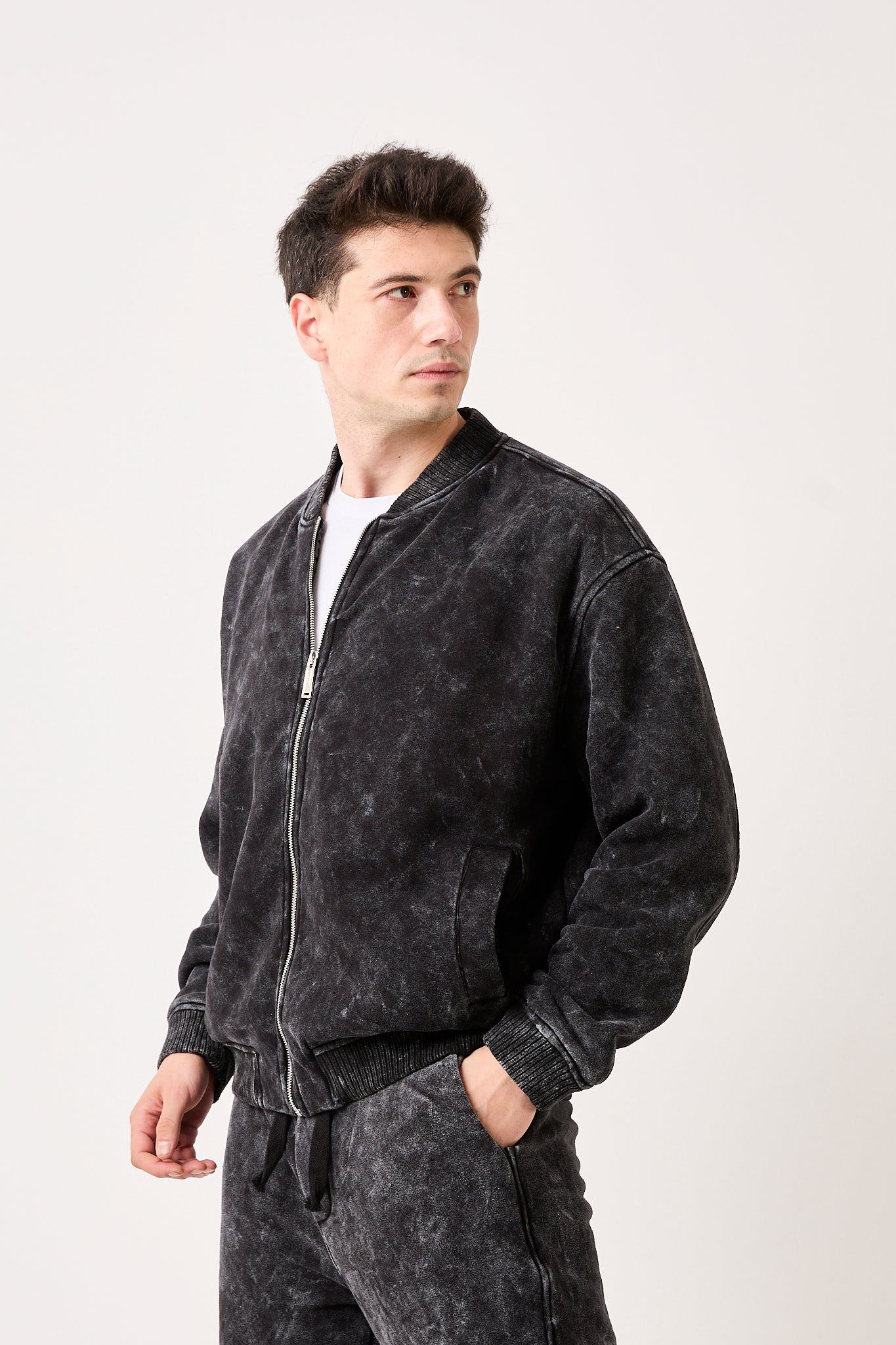 Washed Black Zip-Up Bomber Sweatshirt – X-2003