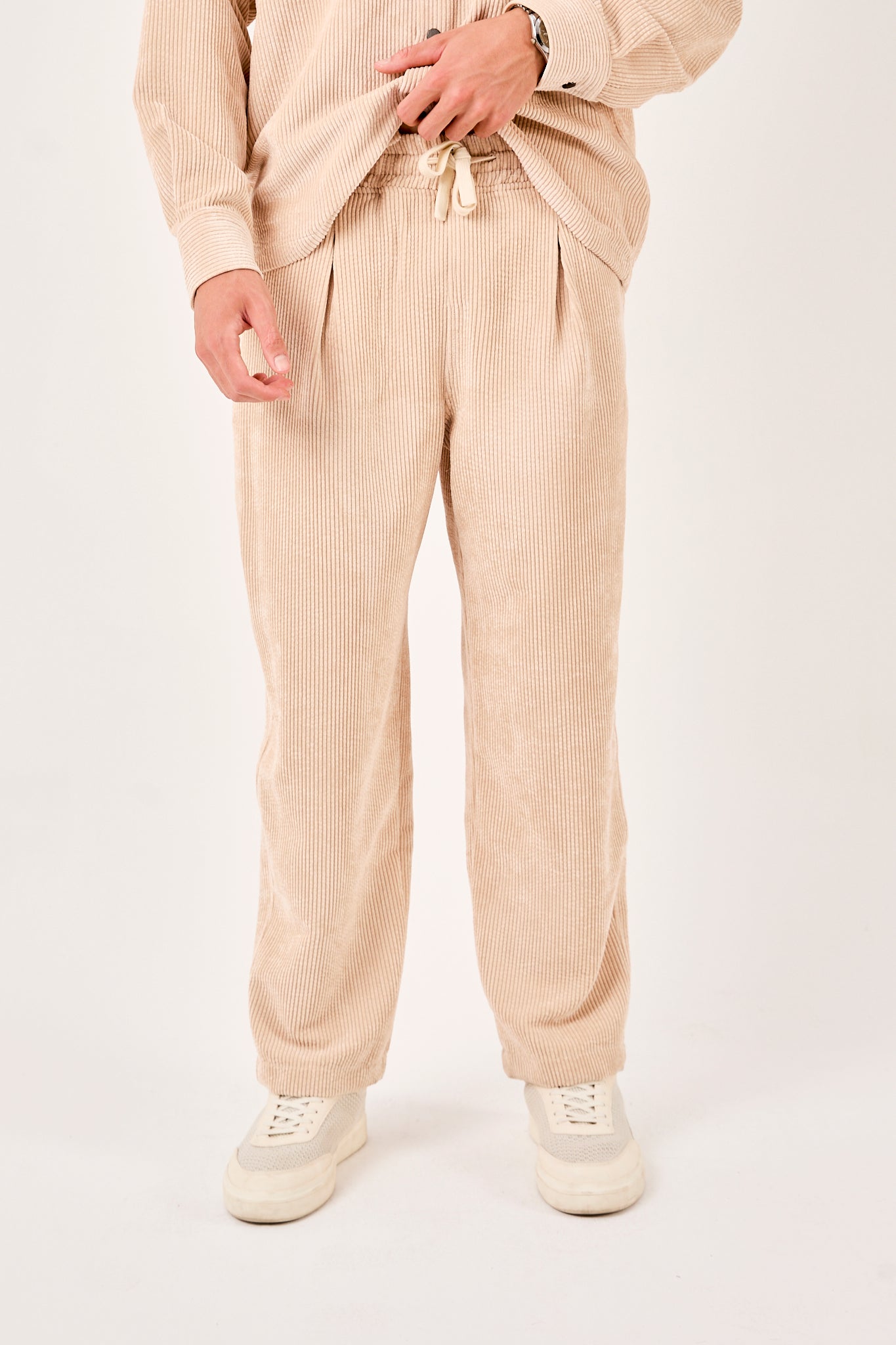 X-1004 Mens Corduroy Lounge Pants Cream Relaxed Fit Drawstring Waist Side Pockets