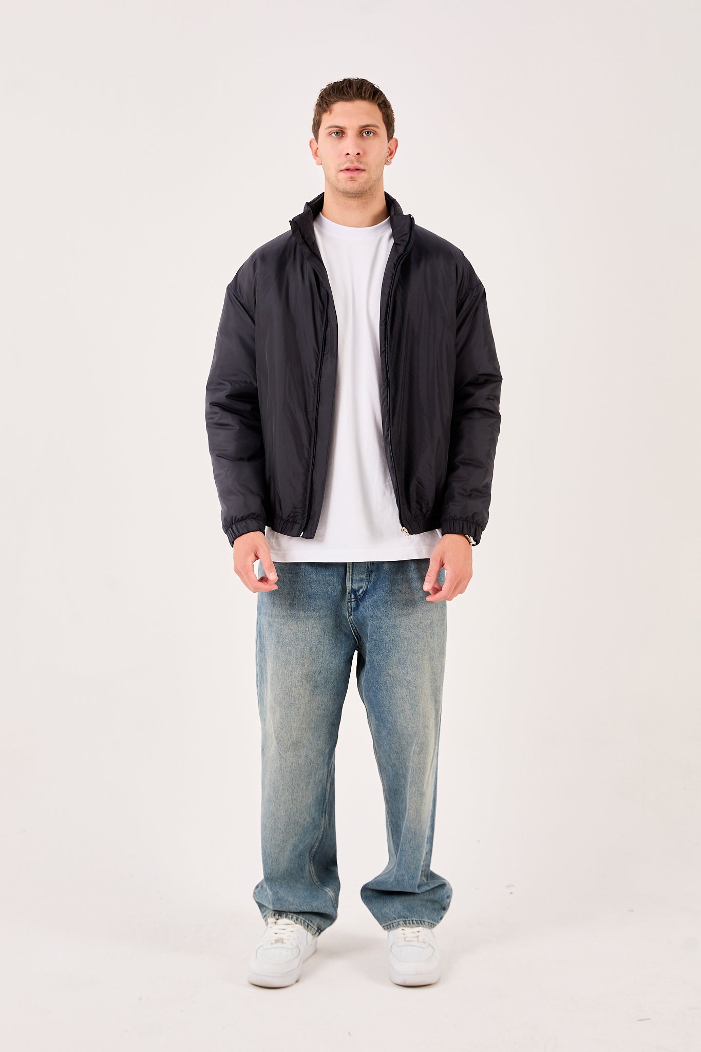 Beat the chill with this navy lightweight puffer jacket. A water resistant shell and soft padding deliver warmth without bulk. The stand collar and full zip front make layering simple, while elastic cuffs and hem help block wind. The regular fit sits comfortably over tees or hoodies for everyday wear, commuting, and travel.