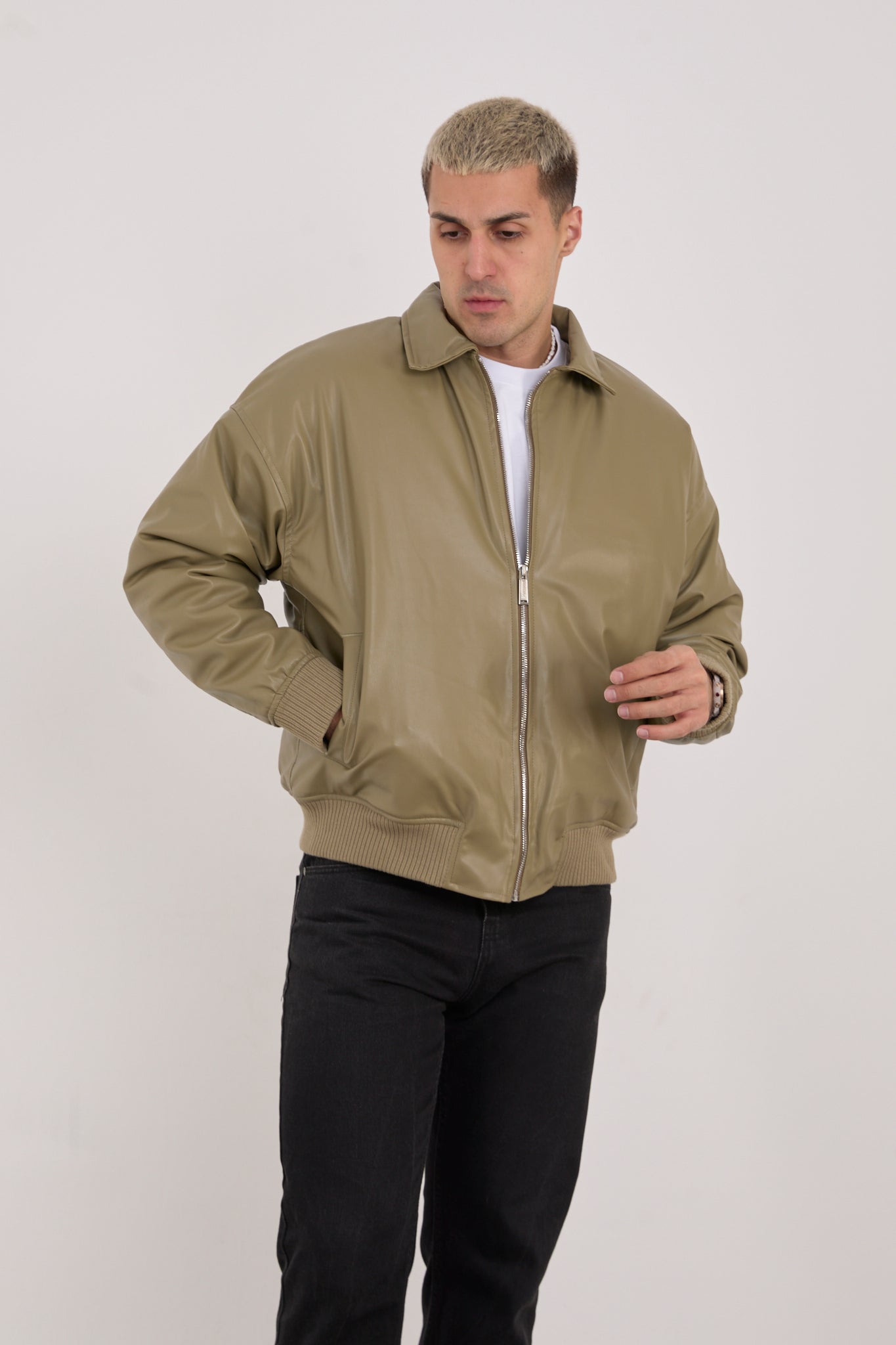 This men’s minimal bomber jacket is designed for clean styling, everyday comfort, and modern versatility. Featuring a smooth vegan leather outer, it delivers a refined look with a subtle sheen while remaining lightweight and easy to wear throughout the day.