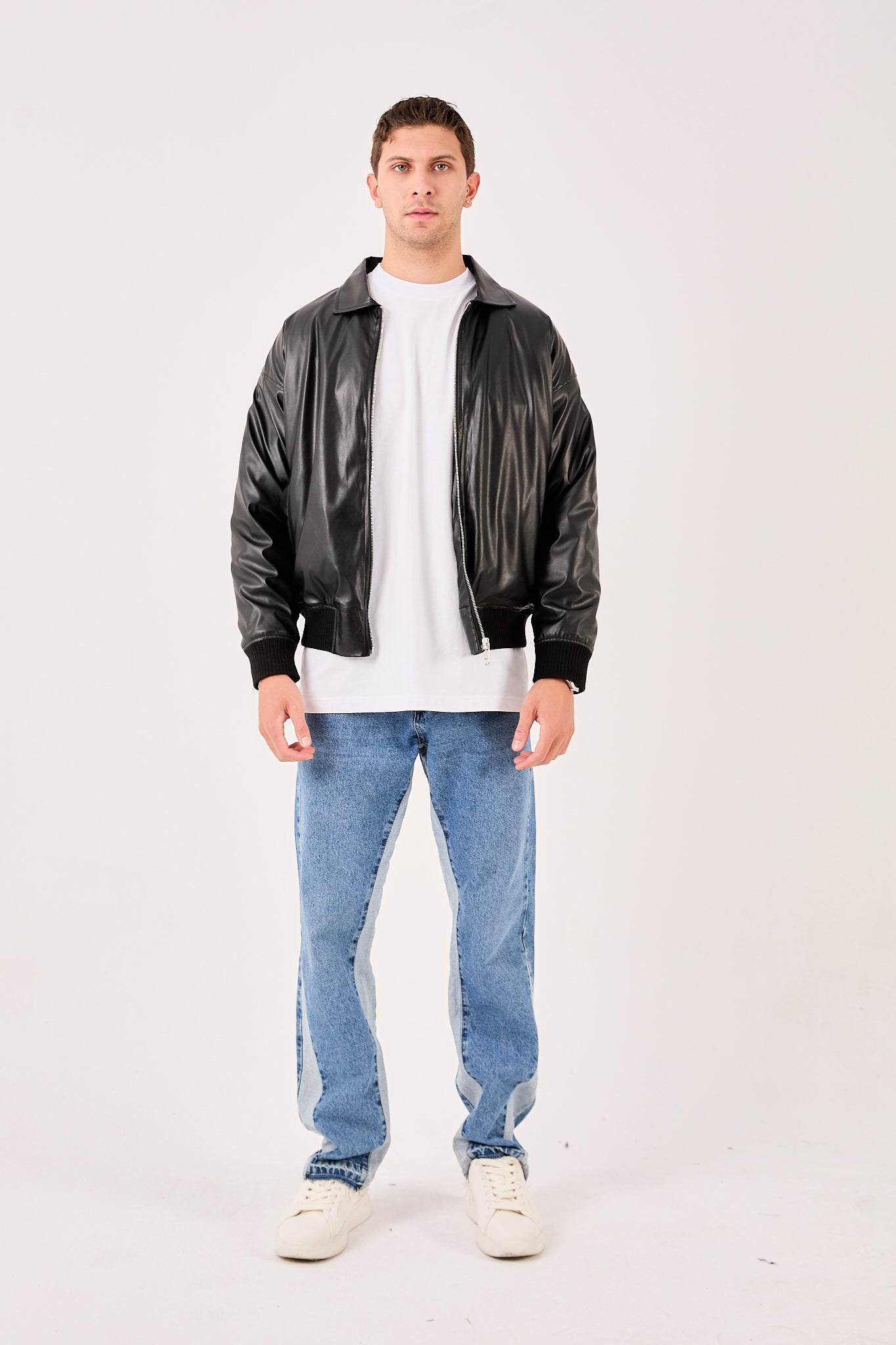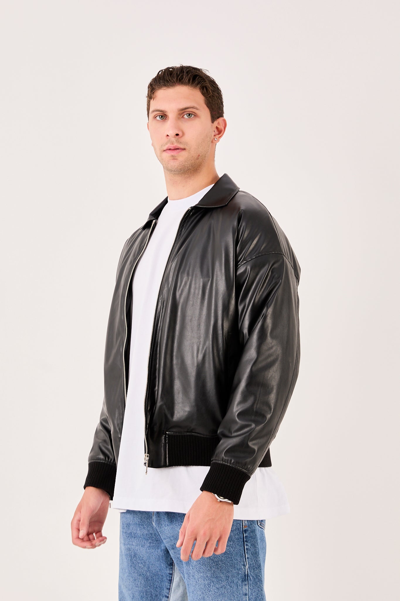 X-2015 Mens Bomber Jacket Black Zip Front Shirt Collar Ribbed Hem