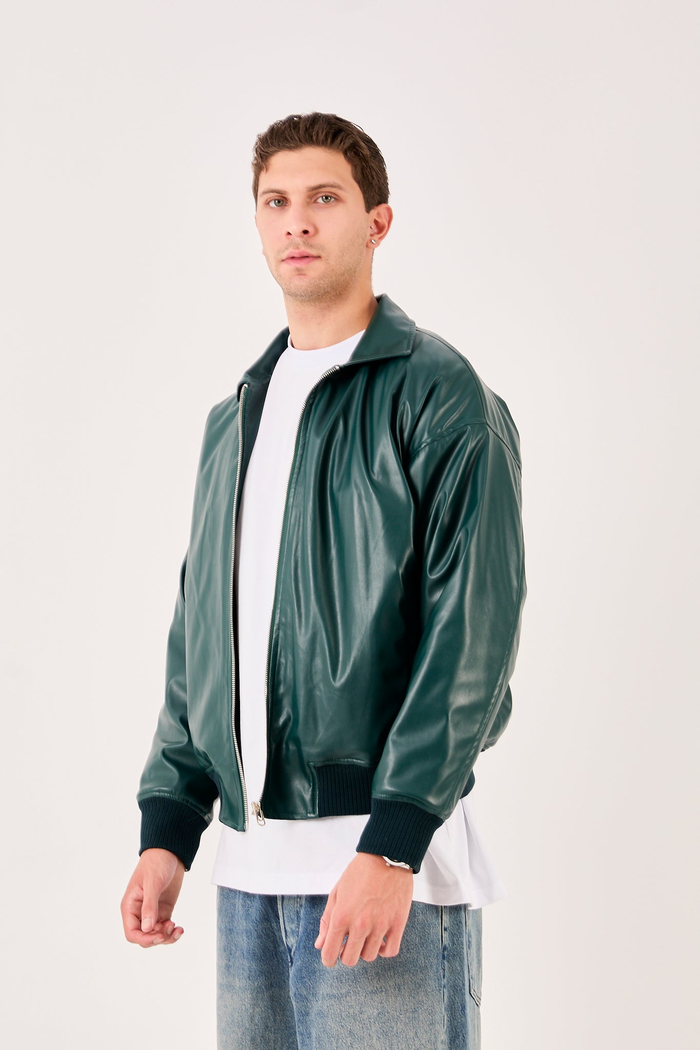 Add a fresh tone to your rotation with this dark green bomber jacket. A smooth zip front and crisp shirt collar give it a smart casual edge, while ribbed cuffs and hem keep the fit secure and comfortable. The regular bomber silhouette layers easily over tees or hoodies for everyday wear.