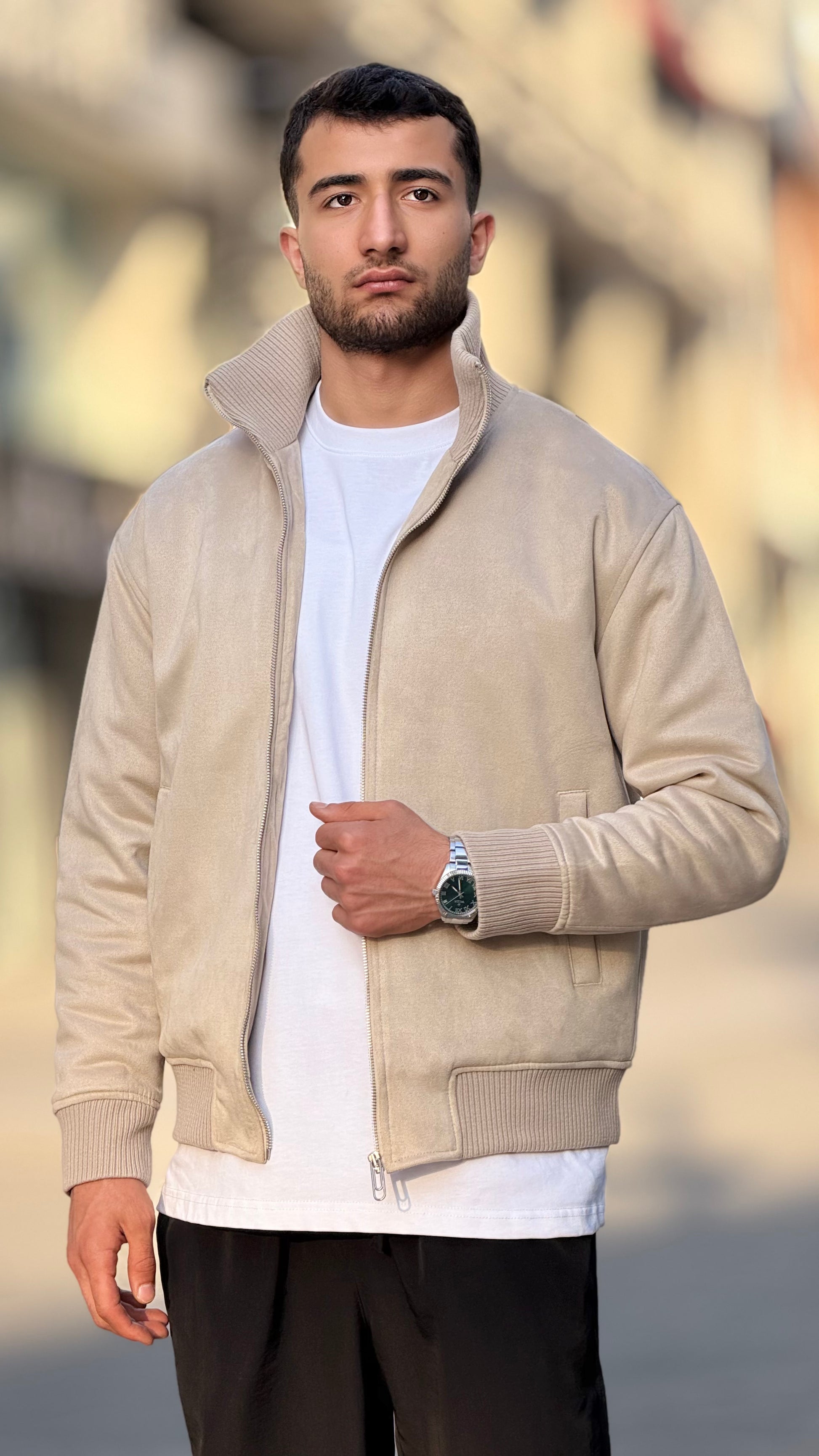 Add a clean and refined touch to your wardrobe with this cream beige suede-touch bomber jacket. Designed with a soft matte texture and a modern silhouette, it delivers both comfort and elevated minimalism. The neutral light-sand tone makes it easy to style with whites, blacks, denim or earth-toned essentials.
