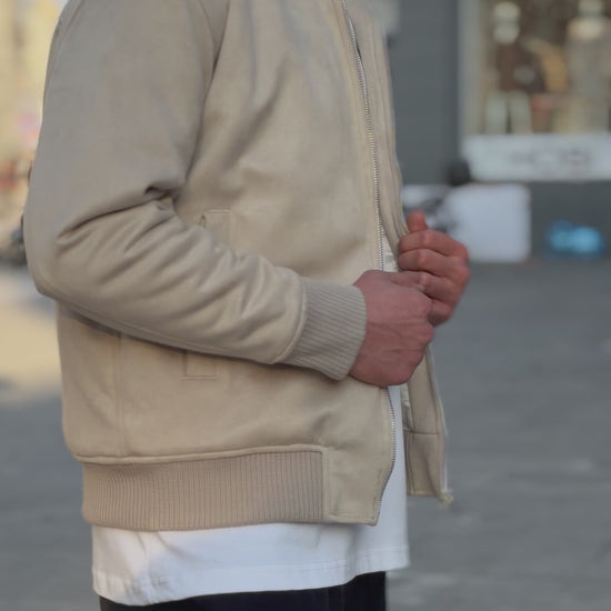 X-2021 Men’s Soft Suede Zip-Up Bomber Jacket – Off-White