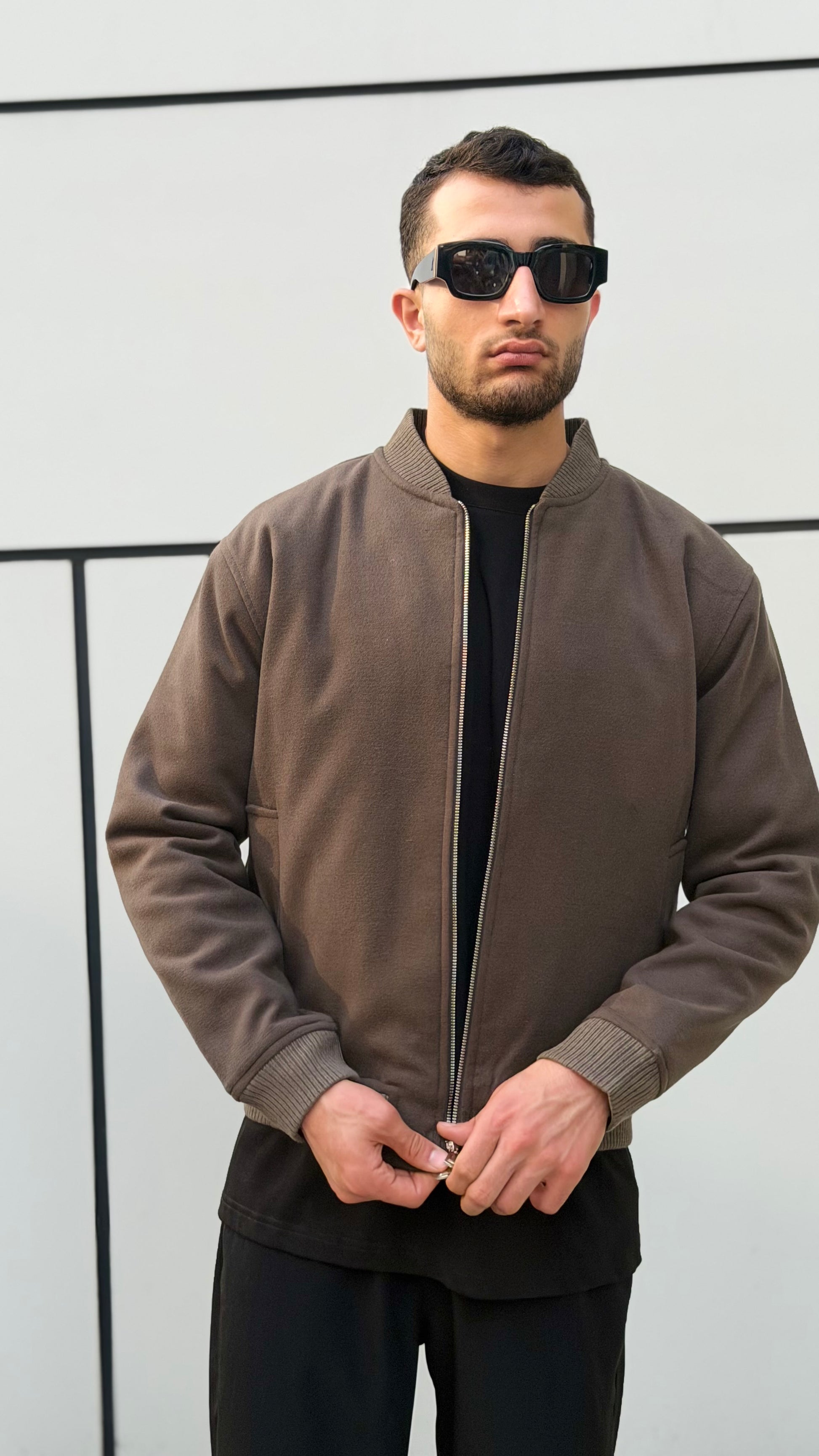 Upgrade your everyday style with this taupe brown bomber jacket, combining a clean silhouette with a warm, fully lined interior. Designed for comfort and versatility, it features ribbed cuffs, collar and hem for a structured fit, while the elasticated waistband sits neatly on the hips. The smooth wool-look texture adds a premium feel, making it ideal for both casual and smart-casual outfits. With a full zip closure and practical side pockets, it's the perfect layer for cool-weather streetwear.