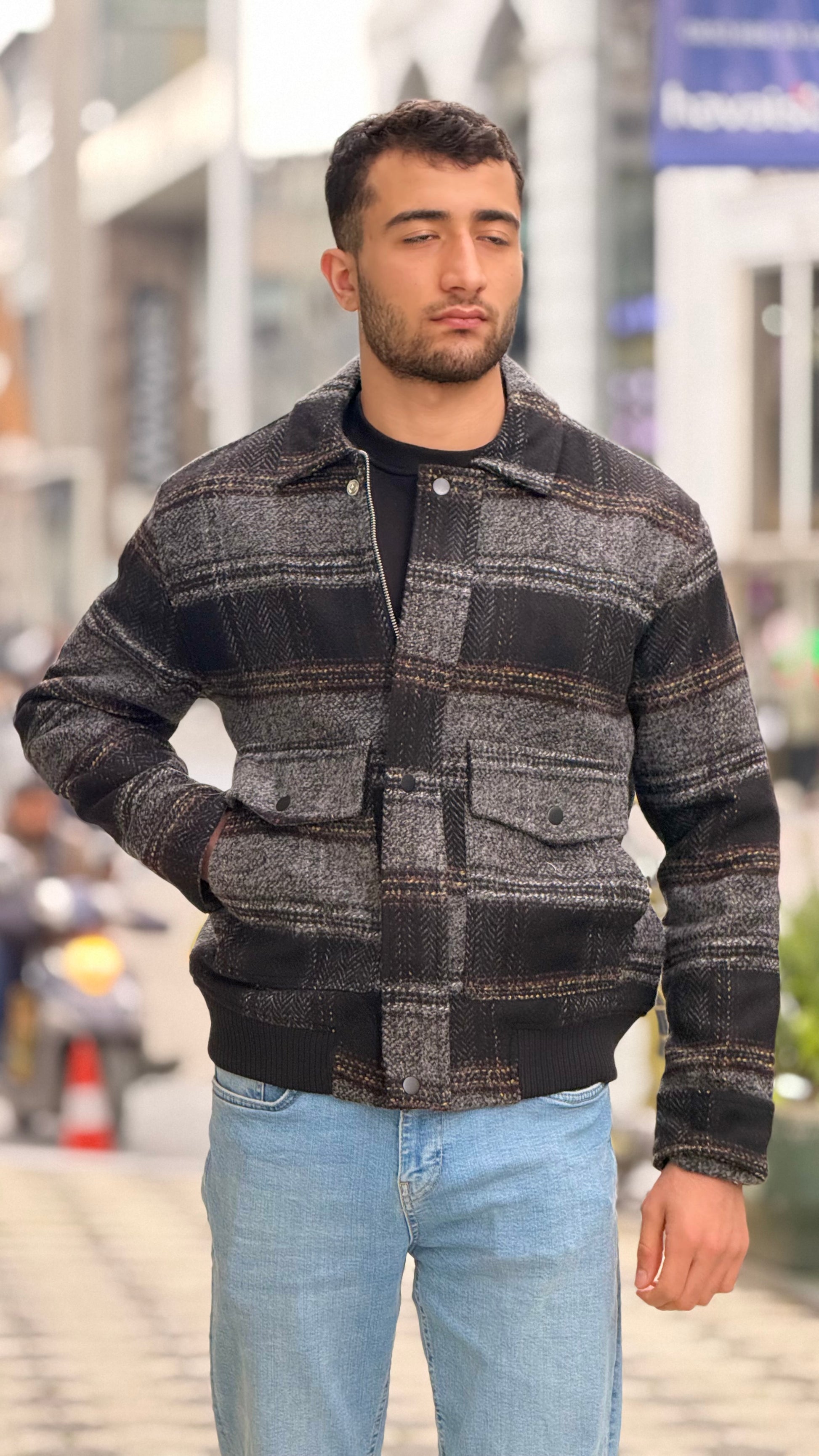 Stay warm, stylish and effortlessly modern with our Men’s Wool-Blend Grey/Black Checked Jacket, crafted from a high-quality blend of 70% Acrylic, 20% Polyester and 10% Wool. This fabric composition offers excellent warmth, durability and a soft premium feel—making it ideal for autumn and winter styling.