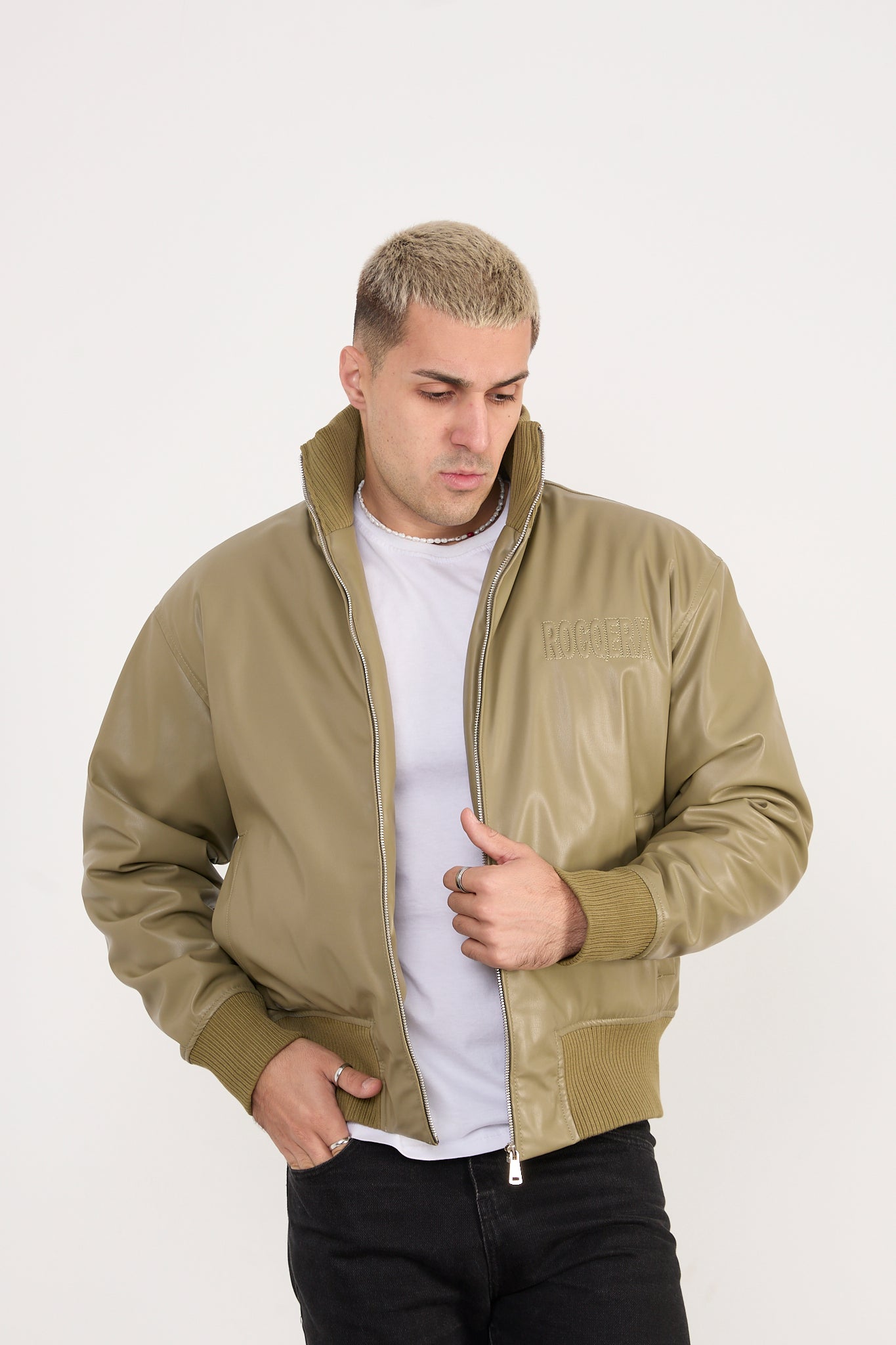 This men’s bomber jacket is crafted from premium vegan leather, combining a sleek leather-look finish with a fully animal-free, cruelty-free design. The olive (khaki) color delivers a refined, earthy tone that elevates everyday outfits while remaining versatile and timeless.