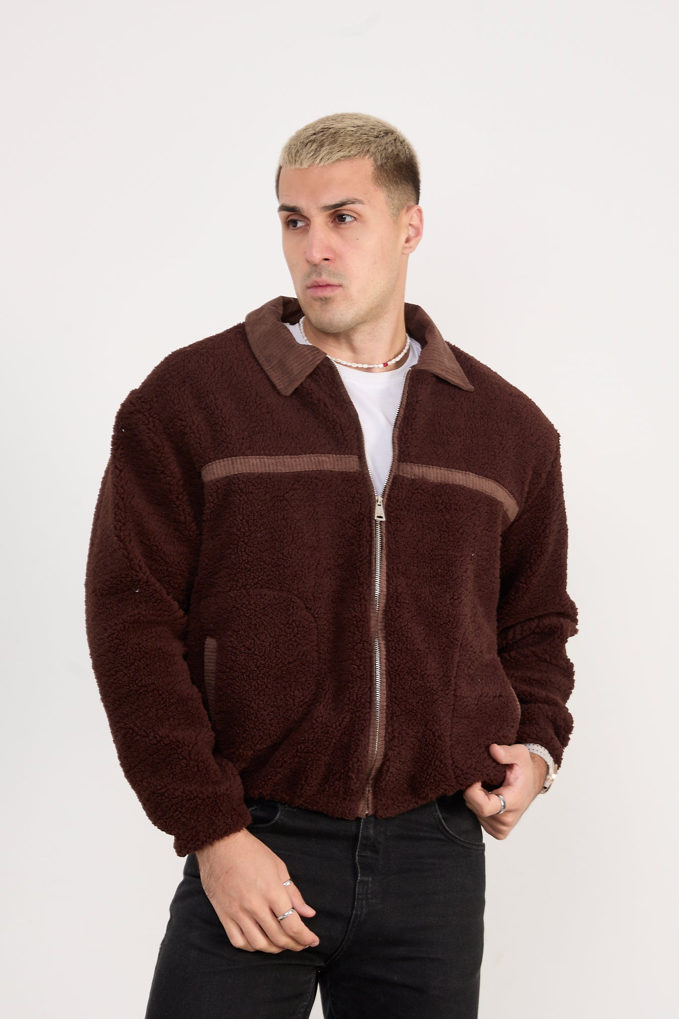 Designed with a full-zip front and a relaxed fit, this jacket is ideal for layering during cooler days. The rich brown color adds a classic, earthy tone that pairs effortlessly with denim, black trousers, or casual streetwear outfits.