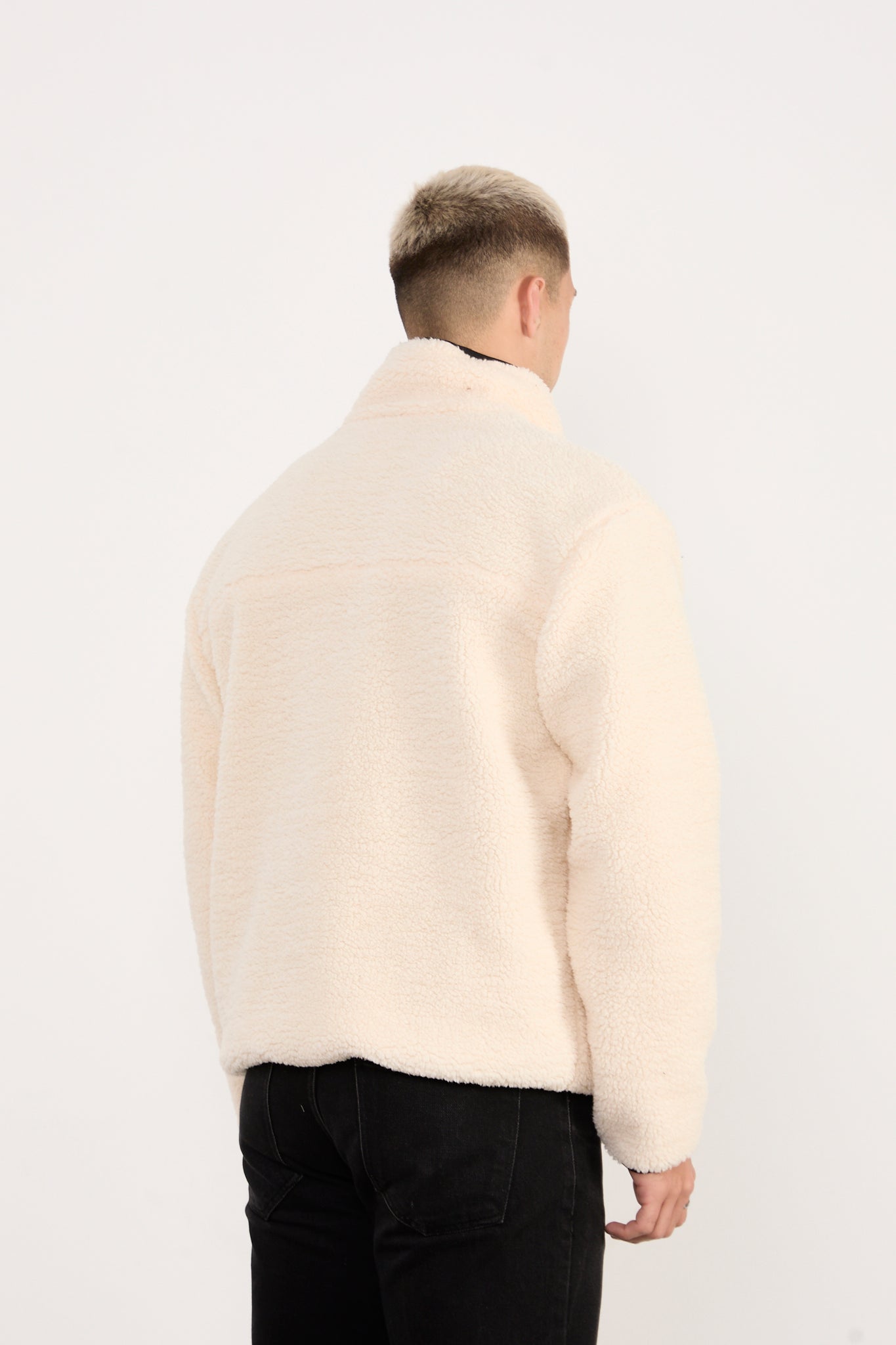The soft plush texture provides warmth and a cozy feel, making it ideal for cool weather. Designed for versatile styling, it pairs effortlessly with t-shirts, sweatshirts, or hoodies for an urban, casual outfit.