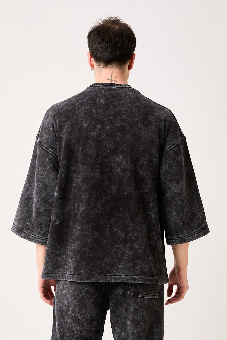 X-4001 – Washed Black ¾ Sleeve Oversized Sweatshirt