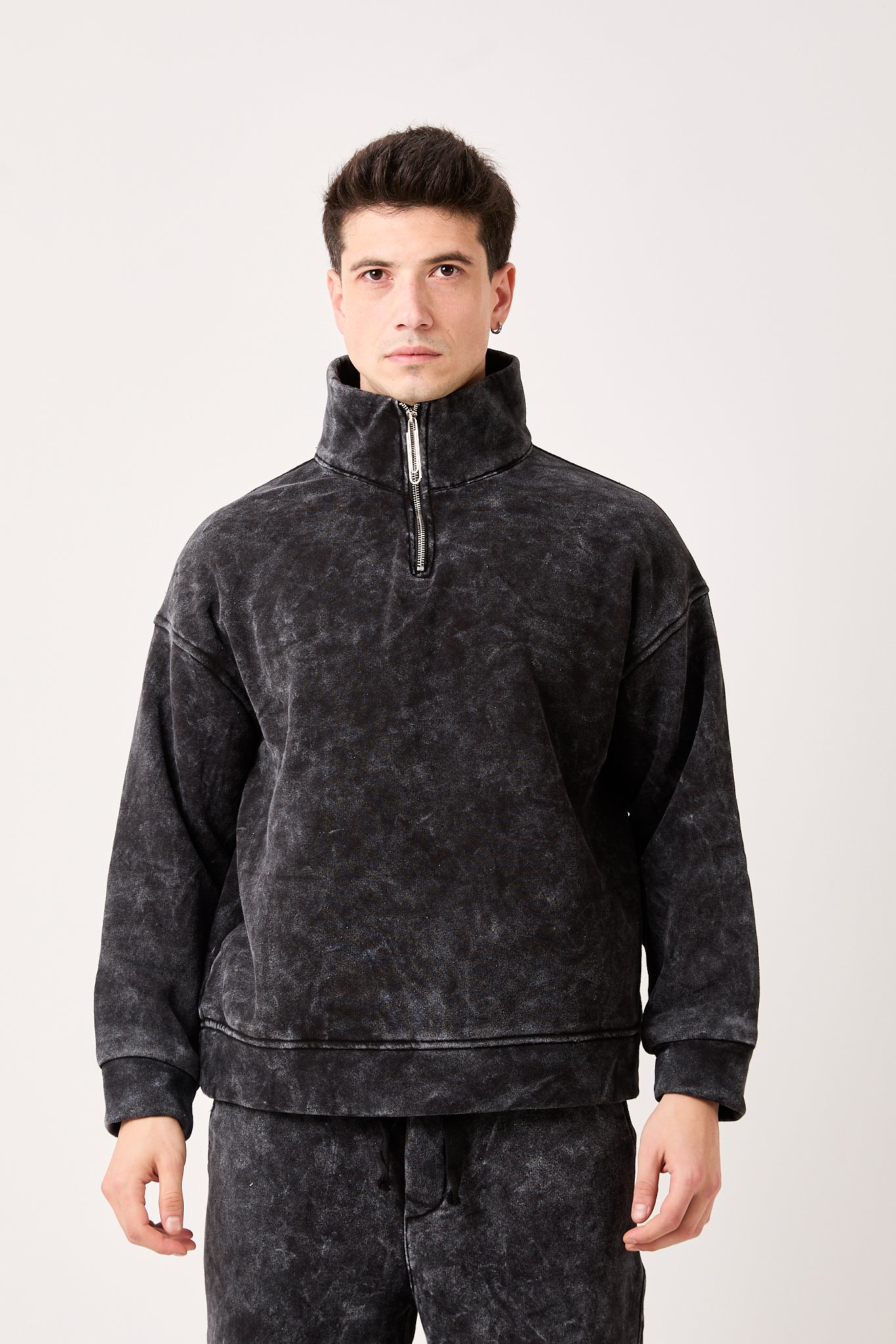 Combining comfort and style, this half-zip washed brushed fleece sweatshirt offers a modern look with its relaxed oversize fit. The half-zip collar detail adds versatility, making it suitable for both sporty and casual outfits.