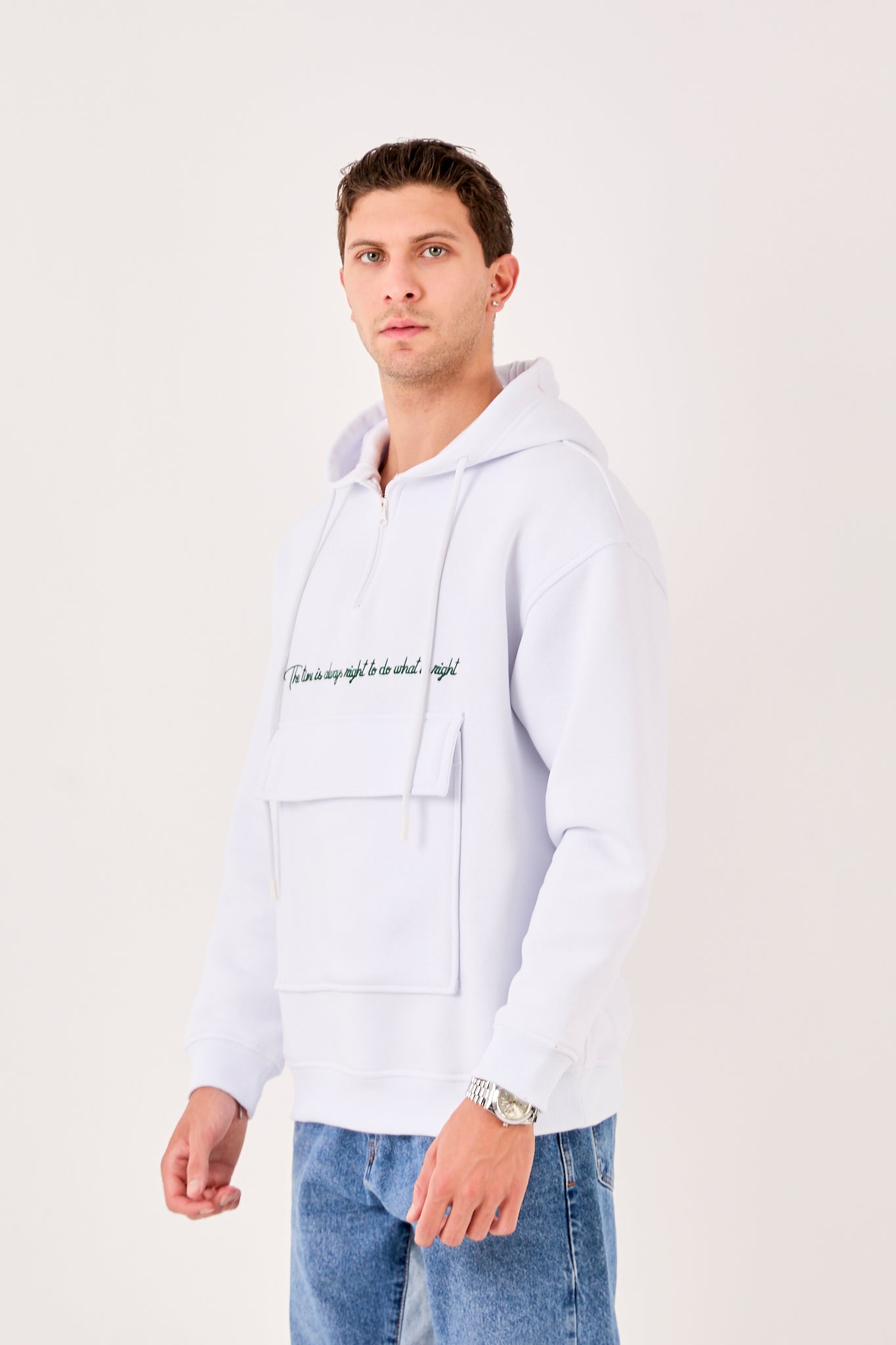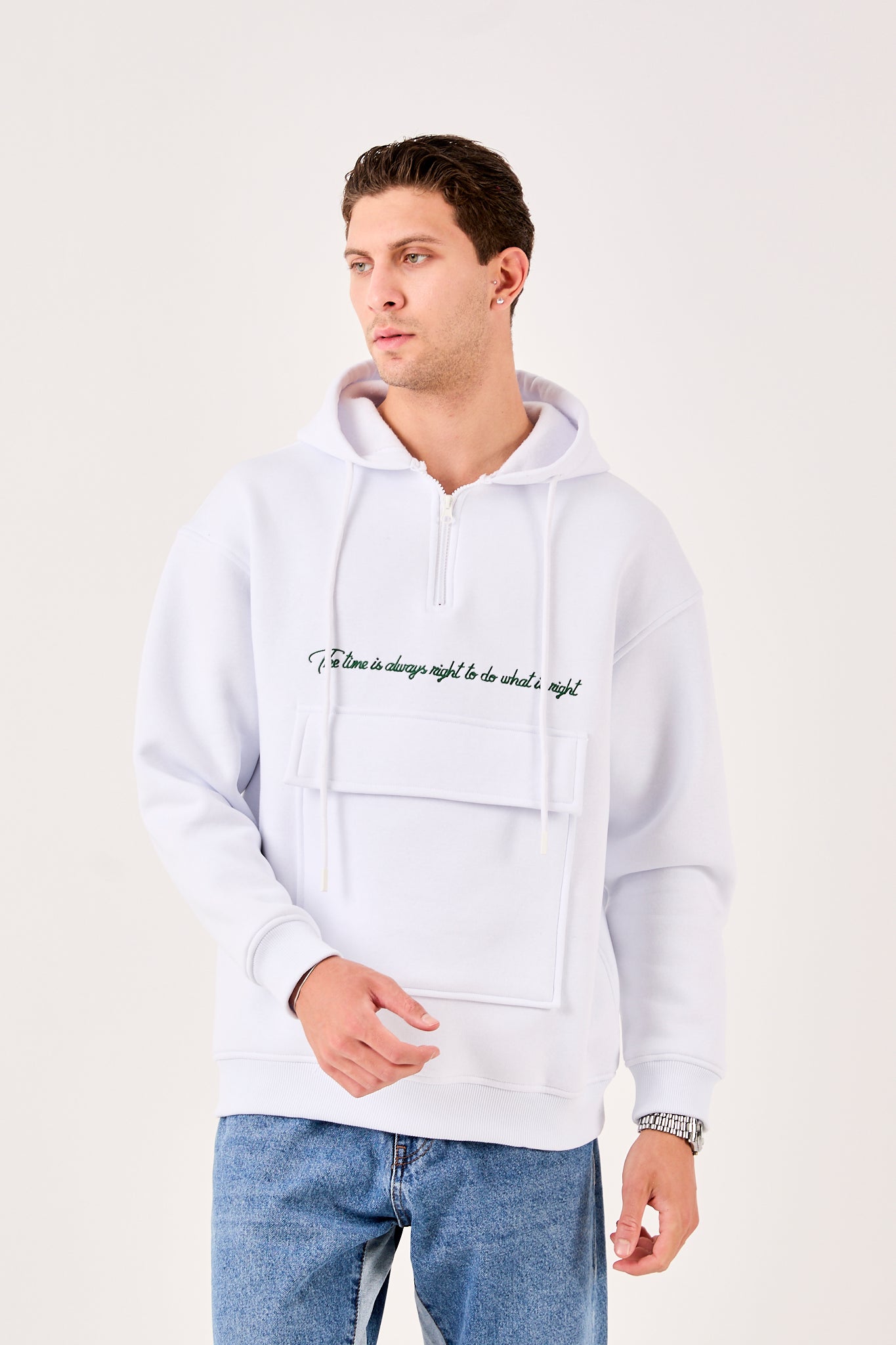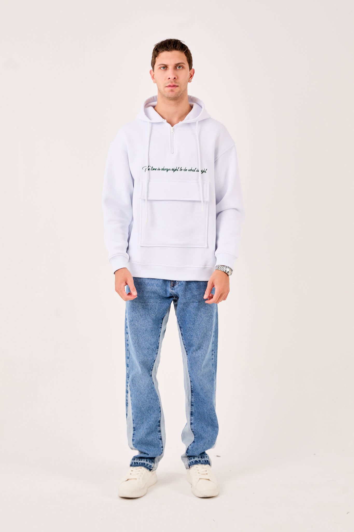 X-1002 Oversized Sweatshirt with Zipped Pocket – White | 3-Thread Brushed Fleece