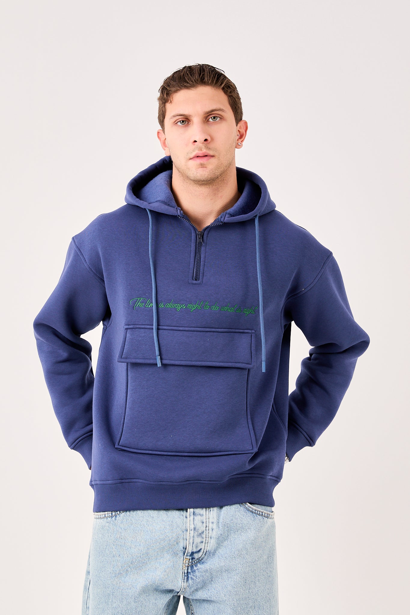 X-4005 Men’s Hoodie in NAVY – Oversized Fit, Fleece Inside, Half-Zip, Kangaroo Pocket